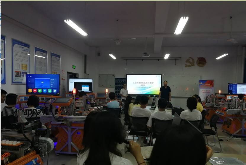 为全面落实《国家职业教育改革实施方案》、教育部等四部门印发《关于在院校实施“学历证书+若干职业技能等级证书”制度试点方案》《关于组织开展1+X证书制度试点院校教师培训的通知》文件精神,为提高公司工业互联网技术专业的团队教学能力,也为工业互联网技术专业的“1+x”考试预热,工业互联网技术专业的教师及员工于9月3日及4日在12-504参加工业互联网预测性维护培训。杜雪飞教授主持并讲解工业互联网的发展前景、企业需求、岗位技能要求、预测性维护的重要性及应用领域。重庆市树德科技技术总监沈道军开展预测性维护案例分享及实操培训。