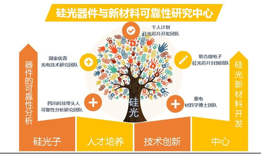 为提升硅光创新中心产业服务能力,改善科创载体,丰富创新内涵,提供研究着力点,团队成员就科创平台科研方向进行了深入探讨。计划在现有基础上,与国内顶尖的硅光团队(包括“国家千人”团队、“国家优青”团队、“四川科技带头人”团队等)合作,以重电硅光材料学博士团队为基础,以高速硅光芯片为项目载体,以器件可靠性测试为服务方向,以硅光新材料为研究目标,开发硅光集成芯片,打造硅光器件与新材料可靠性研究中心。建成西南片区一流水平硅光芯片可靠性分析平台,成为服务产业的创新平台标杆。
