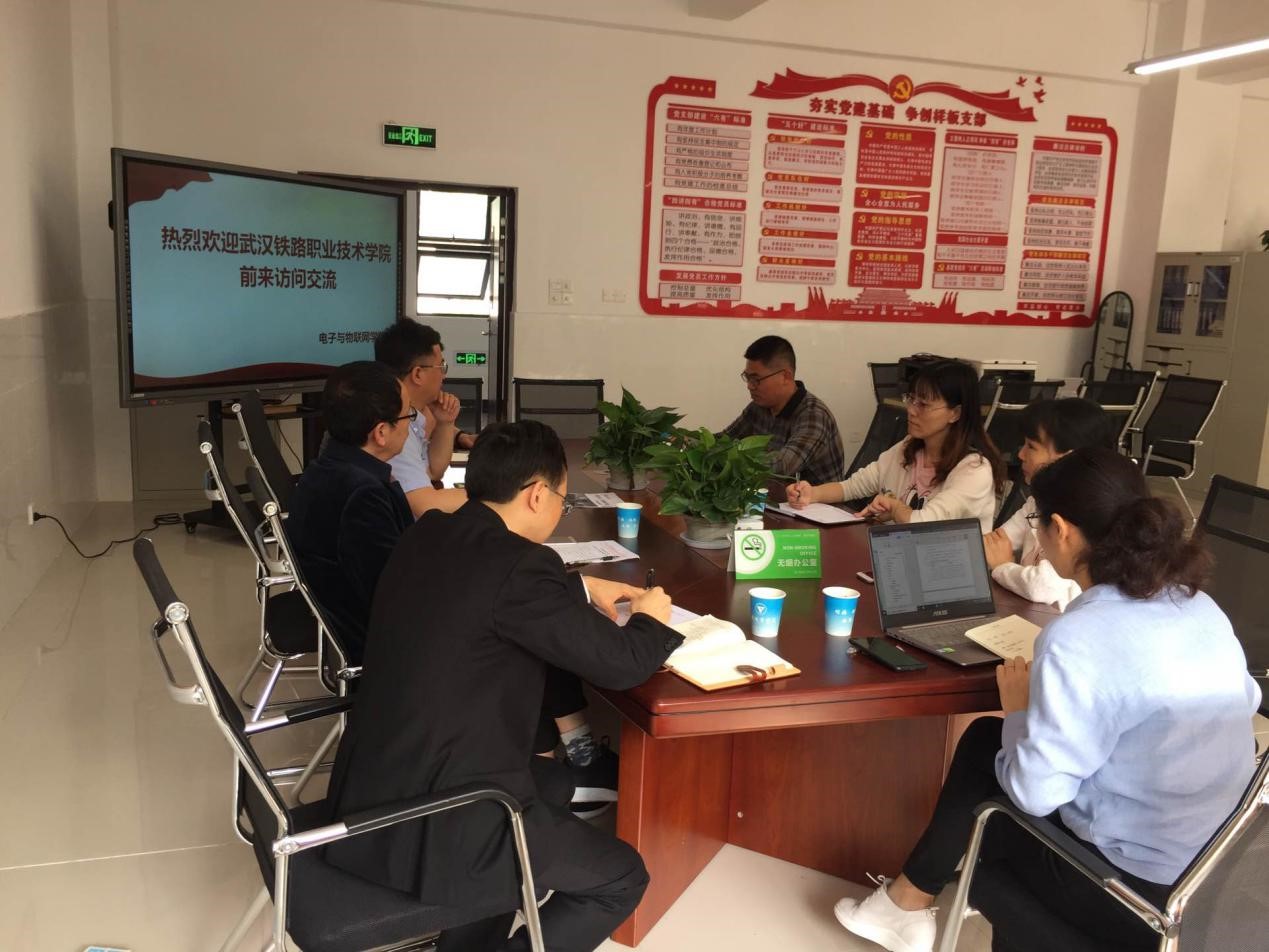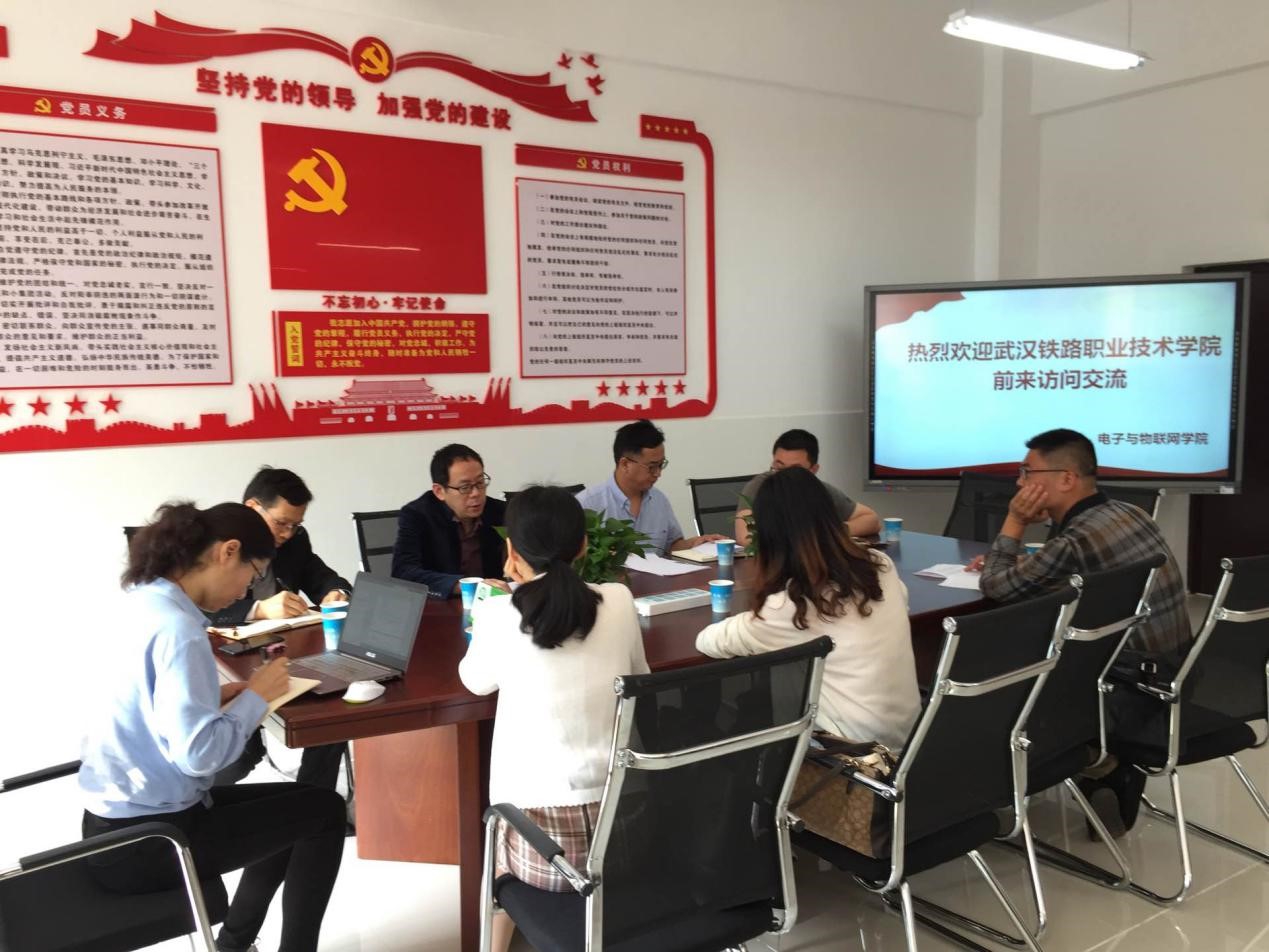 2019年5月10日上午9:00,武汉铁路职业技术公司机械与电子公司副经理张辉一行三人来公司调研参观。公司陈良经理、智能电子系主任王用鑫、信息服务系主任刘睿强、学科带头人王宝英、武新出席了本次座谈会。
