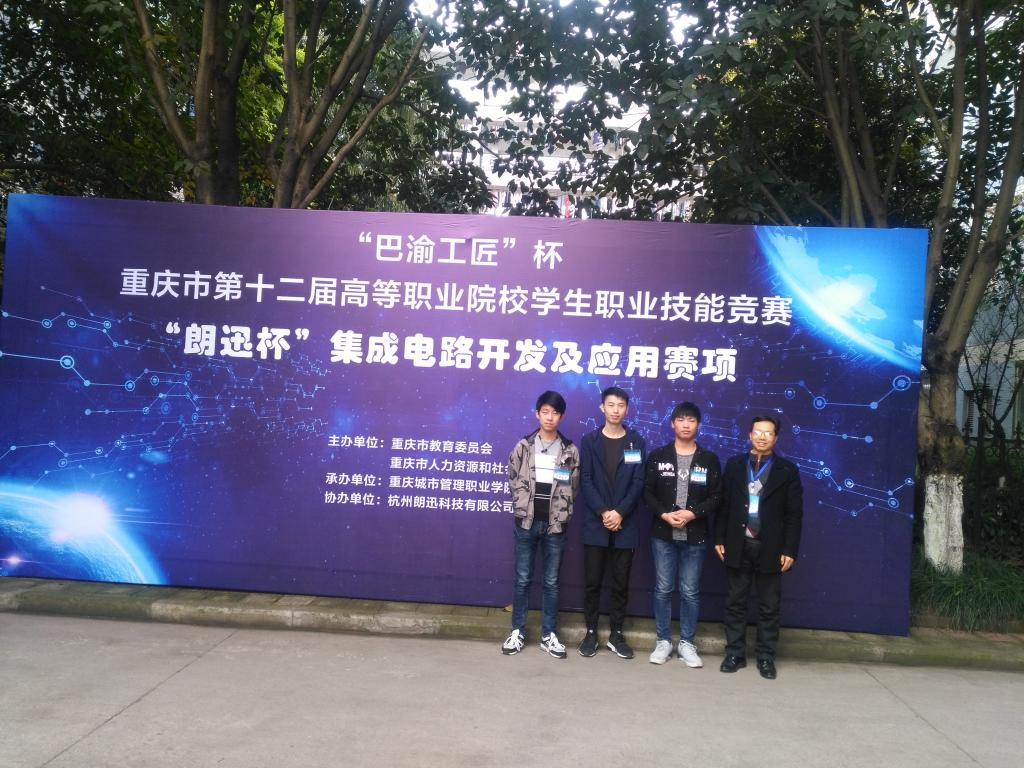 2019年4月3日,“巴渝工匠”杯重庆市第十二届高职院校员工技能竞赛“集成电路开发及应用”赛项在重庆城市管理职业公司举办。经过半年的艰苦备赛,来自太阳成集团tyc234cc的胡焘、郑昌成、刘宇、陈远游、龙永腾和张立智六位同学组成的两支参赛队伍,通过紧张激烈的角逐,以总分第二和第七的成绩分别荣获本届大赛二等奖和三等奖,并取得了参加集成电路开发及应用赛项国赛资格。