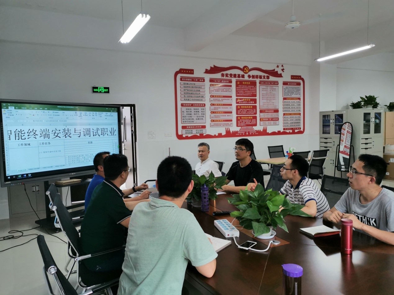 2019年6月17日,公司智能电子系在12207办公室召开智能终端安装与调“X”证书专题论证会。会议由智能电子系王用鑫主任主持,与会人员包括“智能终端技术与应用”专业的全体骨干教师。