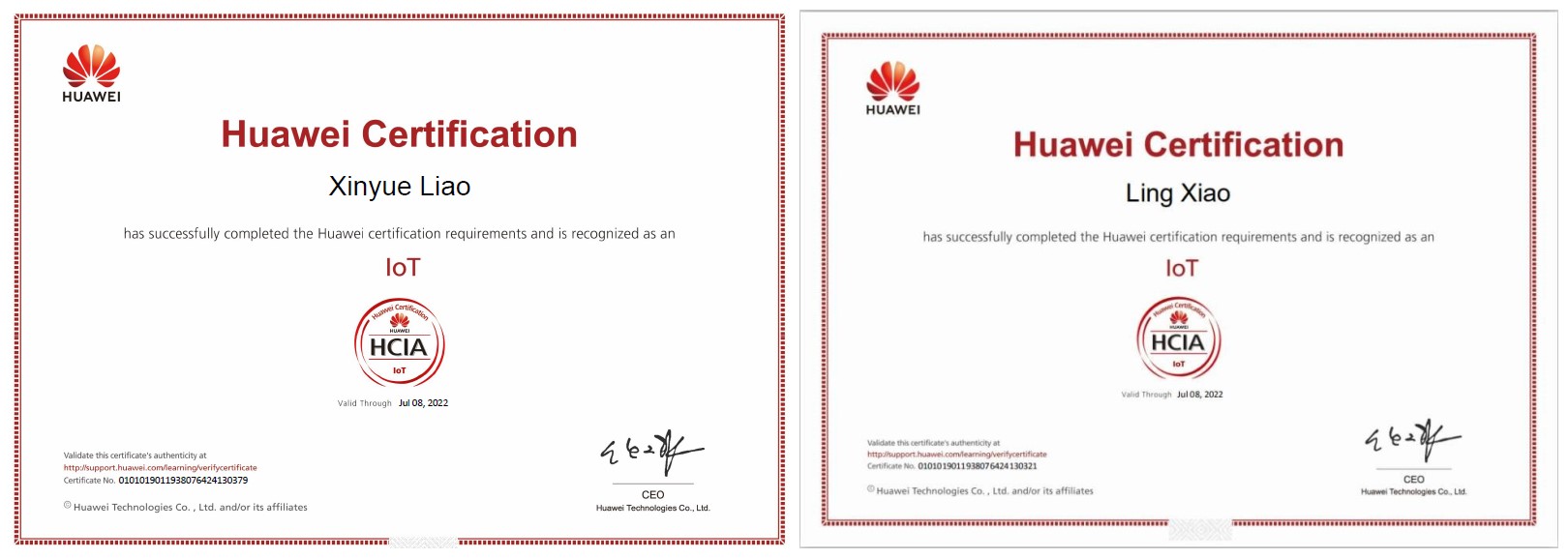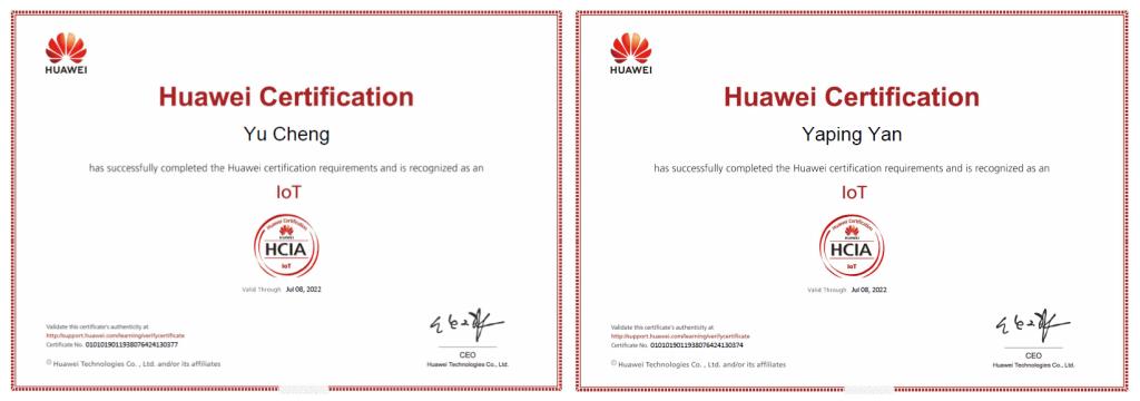 图2 取得的华为HCIa-IoT认证证书(部分)