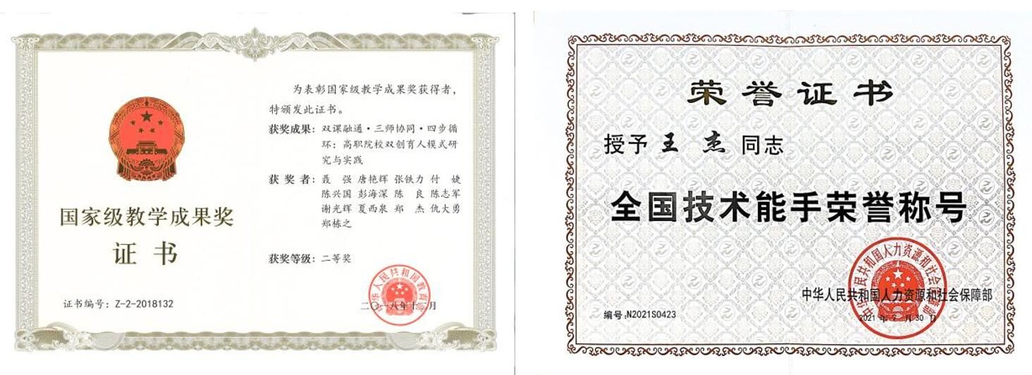 国家技能人才培育突出贡献奖;
