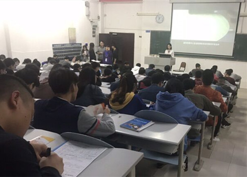 9月28日上午10点,SK海力士半导体(重庆)有限公司针对公司2019届毕业生的专场宣讲会在南校区7-209教室成功举行。180座的大教室里座无虚席,过道里也挤满了前来参加宣讲的同学。