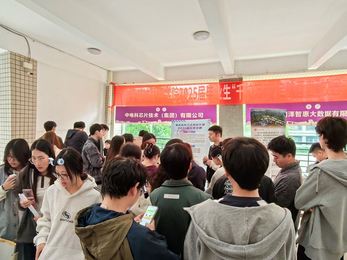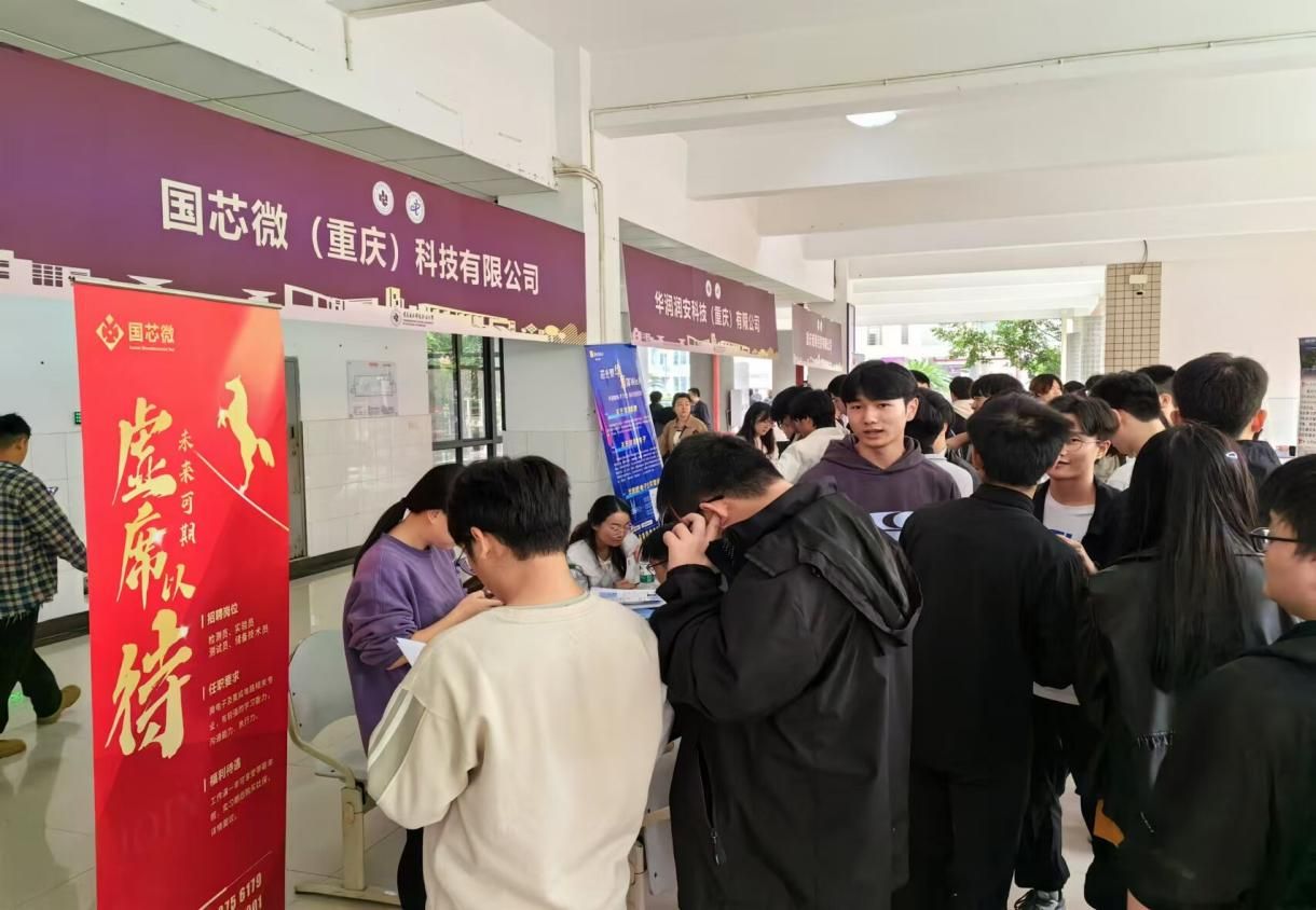 此次校园双选会邀请了40余家合作企业到校选才,共提供了91个岗位面向772人招聘。岗位涵盖专业技术研发、芯片封装测试、物联网工程技术等方向,与公司专业对口率达85%以上,其中有中电科芯片技术(集团)有限公司、国芯微(重庆)科技有限公司、杭州芯云半导体集团有限公司、华天科技(南京)有限公司等行业领军企业。双选会现场,公司2025届毕业生到场积极与参会企业负责人、人力资源管理经理等交流,详细了解招聘岗位、薪资待遇、晋升渠道等就业信息;用人单位详细解读薪资待遇、住房福利、职级晋升渠道等公司制度。公司领导、毕业班辅导员、专任教师在现场与企业招聘负责人深入交谈,了解企业用人需求,并对求职的同学现场进行指导。