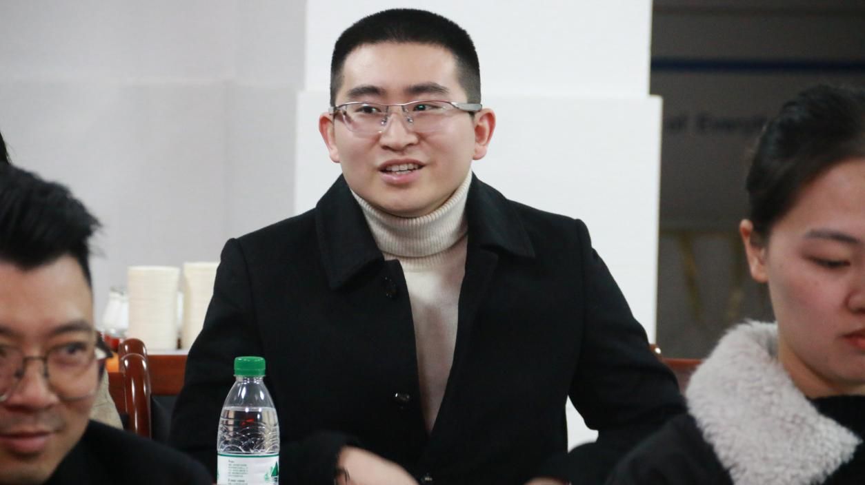 图为往届毕业生姚安俊作自我介绍