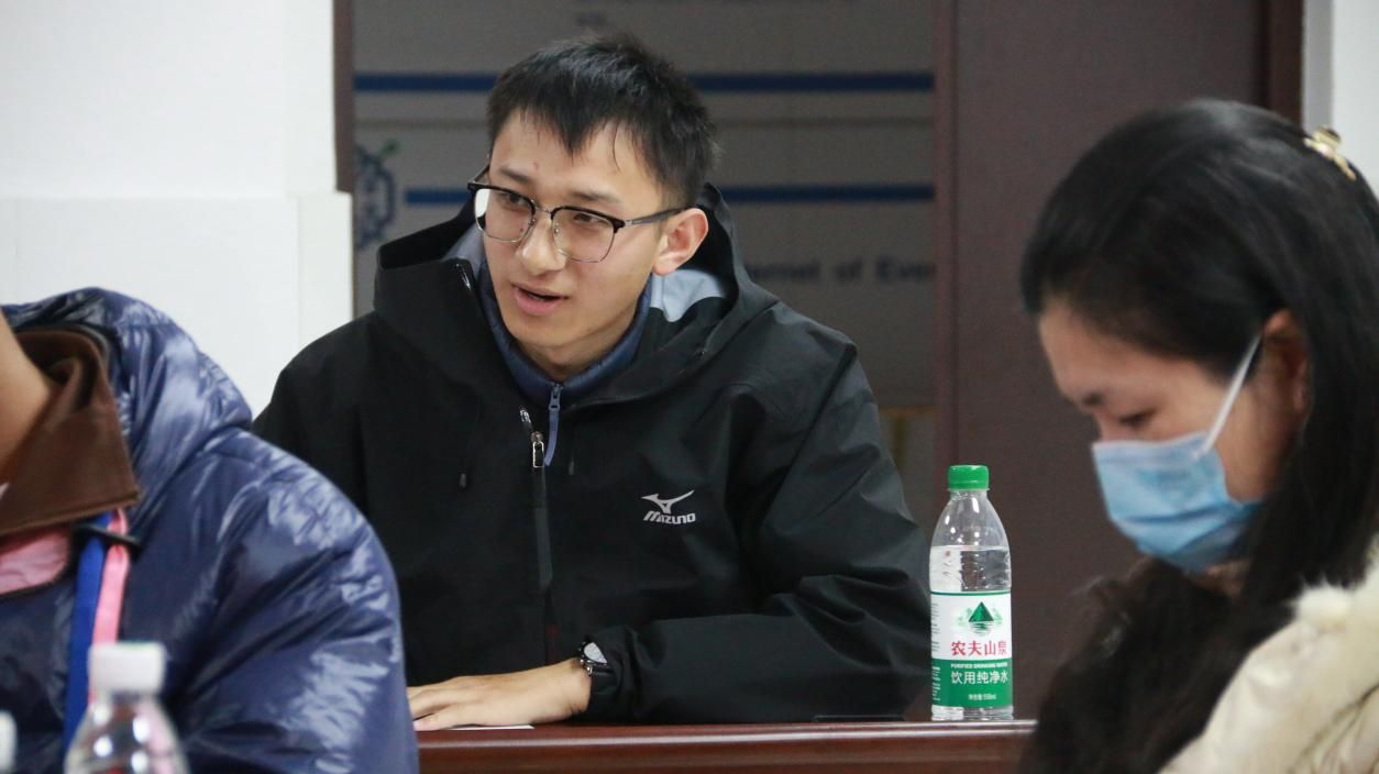 图为往届毕业生邢森作自我介绍