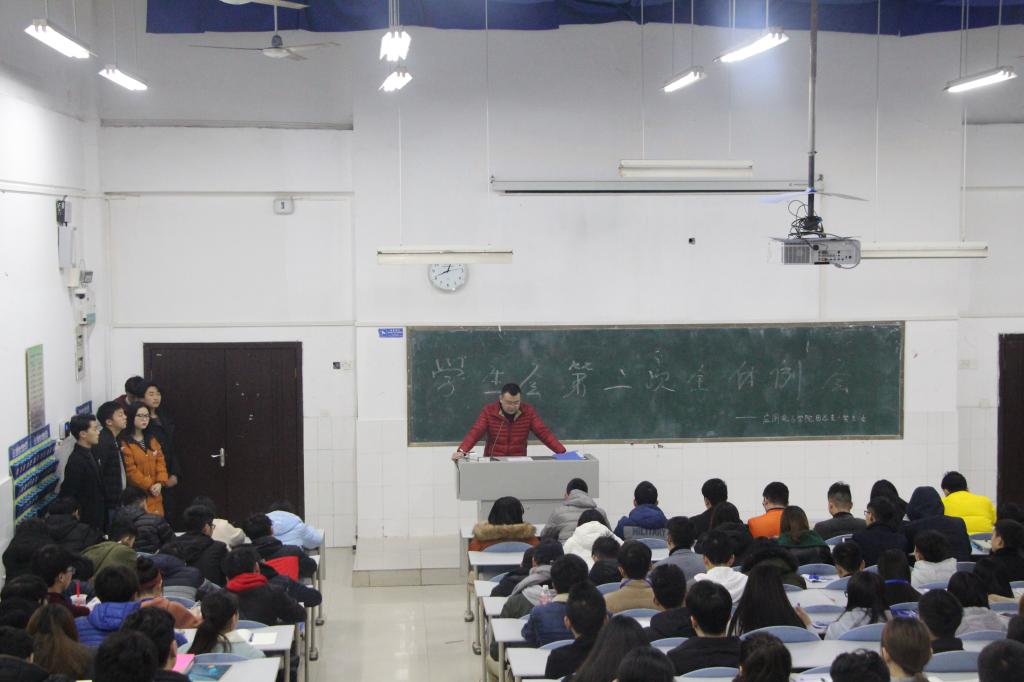 重庆电子工程职业公司应用电子公司于2017年12月28日中午12点半,在南校区7-203召开员工会第二次全体会议。本次会议由员工会主席蒋浩主持,出席此次会议的有团总支书记张力老师、主席团、各部门干部以及全体干事。