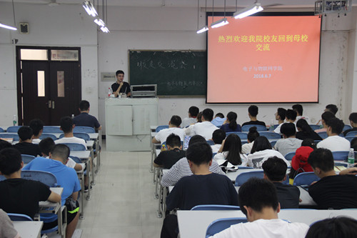 两位员工结合自己的亲身经历先后向同学们分享了自己在公司和在岗位的学习与生活情况,鼓励大家在校期间就要做自己的人生规划,掌握正确的学习方法,培养良好的学习习惯,为以后的工作打好基础。随着两位员工自我学习经验的交流与总结的不断加深,他们的精彩发言使会场不时引发阵阵掌声。活动的最后,同学们踊跃地提问咨询,各抒己见,两位学长都悉心解答,相互探讨,使此次活动在轻松活跃的气氛中结束。
