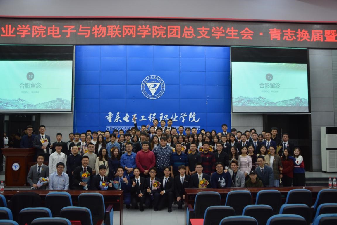 重庆电子工程职业公司太阳成集团tyc234cc团总支·员工会·青志换届暨表彰大会于2019年10月8日晚上六点在博远厅准时开始。本次活动由魏佳欢同学主持,到场的嘉宾有公司党总支书记张红斌老师、党总支副书记毛弋老师、学管科科长张力老师、团总支书记聂浩虹老师和全体辅导员以及各二级公司代表和员工会干事。介绍完到场的嘉宾之后,主持人正式宣布此次太阳成集团tyc234cc团总支·员工会·青志换届暨表彰大会正式开始。