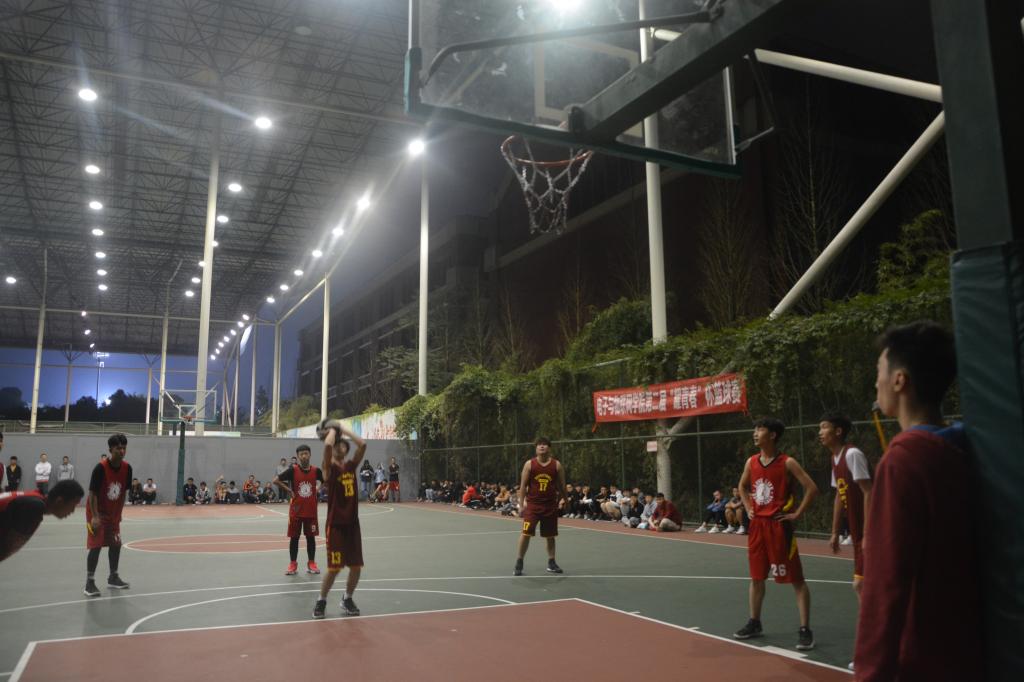 20:00球赛正式开始,“The one”队VS“物工18”队、“Team five”队VS“随便玩”队分别在1号篮球比赛场地、2号篮球比赛场地进行比赛。比赛中各个队伍打得热火朝天,十分激烈,场下欢呼不断。“物工18”队的队员因默契的配合、巧妙的战术应用,最后以59:48的比分战胜 “The one”队赢得本场比赛;“随便玩”队的队员因运球技术娴熟、精准的三分球,最后以39:23的比分战胜 “Team five”队赢得本场比赛。