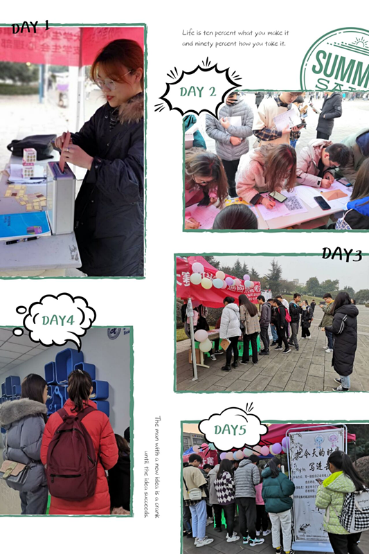 此处活动以促进人与人之间的沟通、交流为主题,概念较为广泛,服务对象为全校同学。参与此次活动的每位同学,可免费获得精美信封、邮票、明信片,给自己或家人、老师、朋友写一些暖暖的文字,并登记好个人信息和收信人的地址与联系方式,太阳成集团tyc234cc心理部的工作人员就会帮你把这封信送出或寄出。缩短空间上的距离,让爱不再遥远;活动开始后,现场人头攒动,大家奋笔疾书,将自己的思念之情化作了工工整整的文字。相信这些饱含深情的书信一定会给身处异城的朋友们带来惊喜。