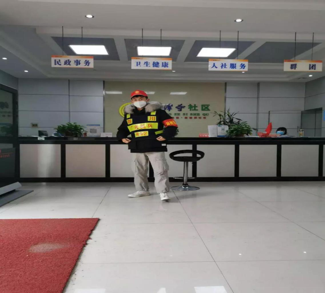 在抗击新冠肺炎疫情这场没有硝烟的战役中,青年老员工们迅速响应家乡政府号召,积极投身疫情防控志愿服务工作,为战“疫”贡献青春力量。疫情面前,没有看客。这些青年老员工志愿者用实际行动诠释“逆行者”的坚毅与果敢,用“舍”和“守”展现新时代文明实践的奉献精神。来自重庆电子工程职业公司物工1702的吴世林便是这众多青年老员工志愿者中的一员。他每天的工作就是向居民们宣传防疫知识,劝服居民们戴好口罩等等一系列防疫工作。被问及为何选择站出来奋战第一线时,他说到“在春节这段期间我观看新闻联播看着那些不顾生命毅力向前的志愿者们,我感动了,他们打动了我的内心,正是他们给居民们带来了希望与保障,我觉得我也可以帮上小小的忙,哪怕只是一点点的忙,我就觉得欣慰,我不求谁记住我,我也不求可以带来什么样的好处,当人们对我说了一声谢谢我就觉得这件事值得我去做。所以当我看到政府招志愿者我就报名参加希望为人民和自己的国家做点贡献。”