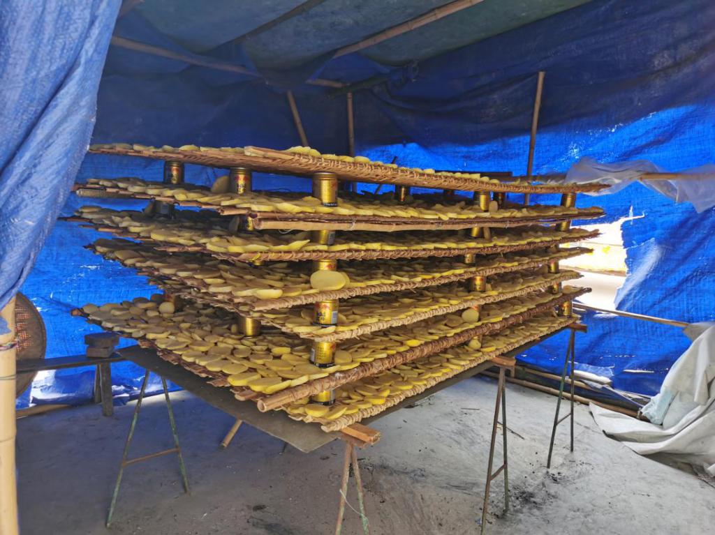 图为炕房里摆放的干洋芋块儿。中国青年网通讯员陈园摄
