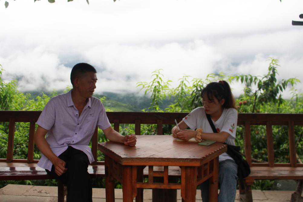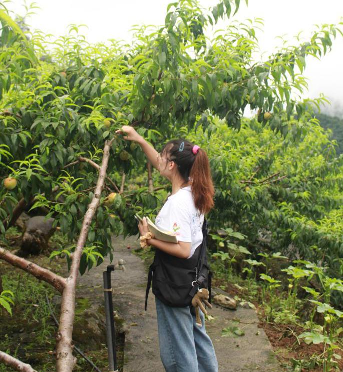 自行参观过后,张先生热情地为队员们介绍整个果园基地农家乐的概况。近年来,鹿角镇乌江村聚焦脱贫攻坚,通过产业调整引进苹果桃等优质品种,大力发展桃树种植业,打造种植观光采摘娱乐“一站式综合体”果园经济,让小桃树发挥脱贫致富大作用。果园农家乐自果园基地正式产桃之际就开始规划修建,主要在三月桃花盛开和七月果实成熟时期开放,该农家乐基础设施含盖了停车场、烧烤区、休闲娱乐区域、采摘区、住宿区、观景区等。近几年来他们先后投资300多万,其中扶贫项目资金95万元,种植桃树4万株,新建产业路3公里,生产便道1.5公里,蓄水池10个,观景亭5个,新建停车场1000平方米,活动广场600平方米,安装杀虫灯100盏,生产条件明显改善,休闲娱乐配套设施日趋完善。不仅如此,此苹果桃基地的建设还带动了当地将近10家农家乐的发展,不仅促进该基地的长期可持续发展,还提升了贫困户村民“造血”功能,大大带动了当地的经济发展和拓展了当地居民的收入渠道。