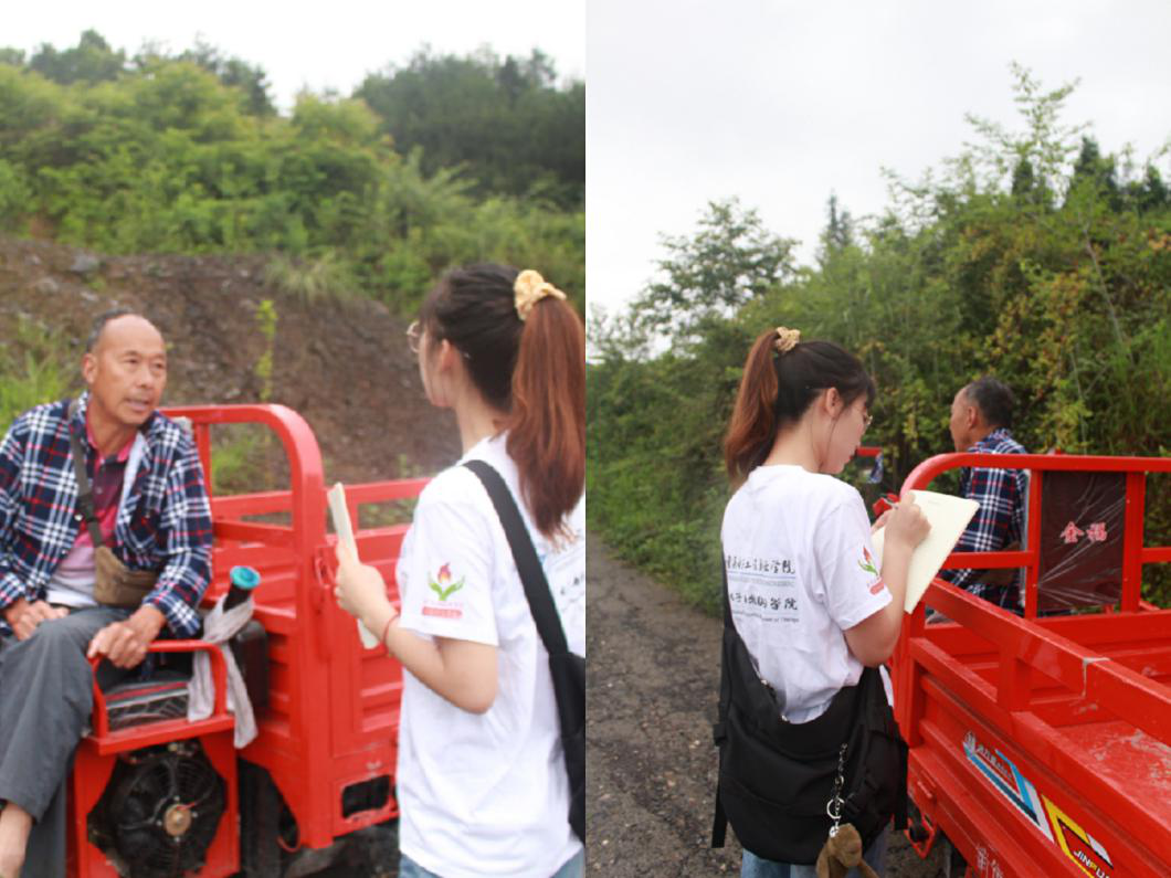 在调研采访过程中,队员们深入到田间地头与村民积极交流,了解到他们的生活、收入情况,了解所种植的金银花的品种、规模、栽培、管理、采摘、加工以及销售情况等,村民们都十分热情的一一回答。
