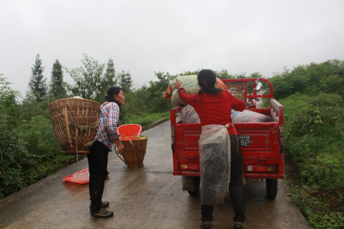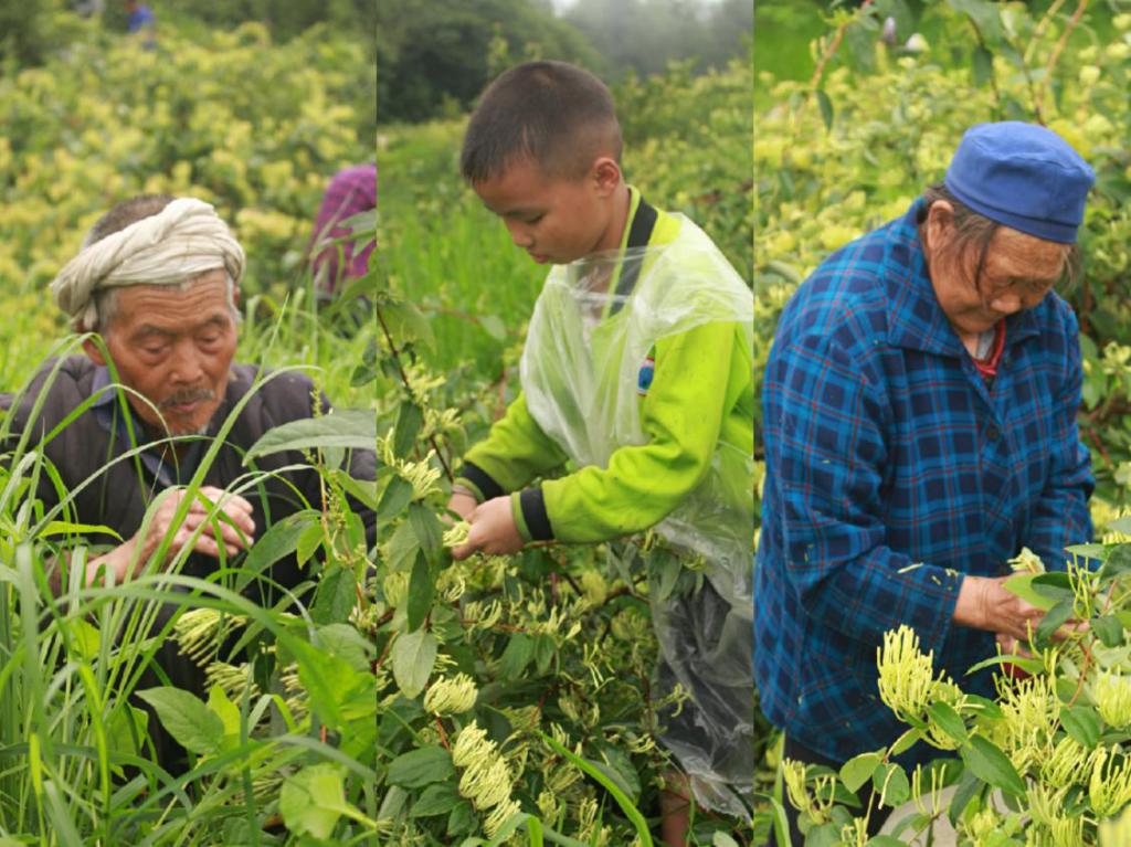 为了能更好的融入到乡亲们中,队员还加入采摘金银花的队伍,与大家一同采摘,一旁的阿姨高兴的与我们交谈“金银花基地让我们带来了一份工作,既可以在金银花基地里打工,又可以在闲暇时去做金银花采摘、剪枝、施肥等工作。这样既有收入也可以在家里带孩子上学!”细心的同学们还注意到,只要种有金银花的土地周边就会有一条水泥小道。经过询问得知,这是为了方便村民们能够用小型三轮车来运载金银花,减轻村民的劳累。但是许多老年人也只能自己背到称重的地方。