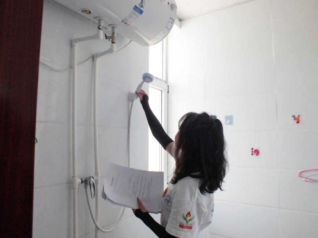 图为队员们在试用光伏光热配置,调试热水情况,感受环保光能与电能热能之间的转化,做到绿色环保。中国青年网 通讯员 冯敏 摄