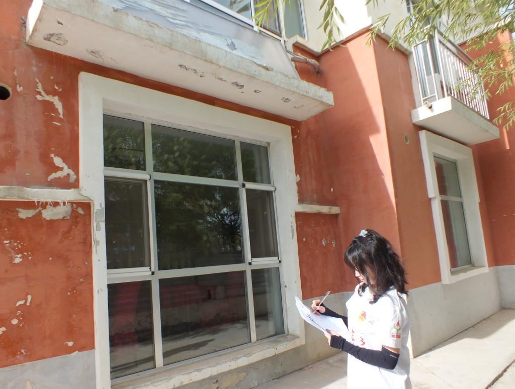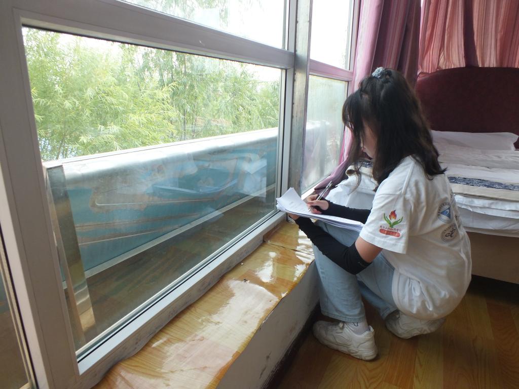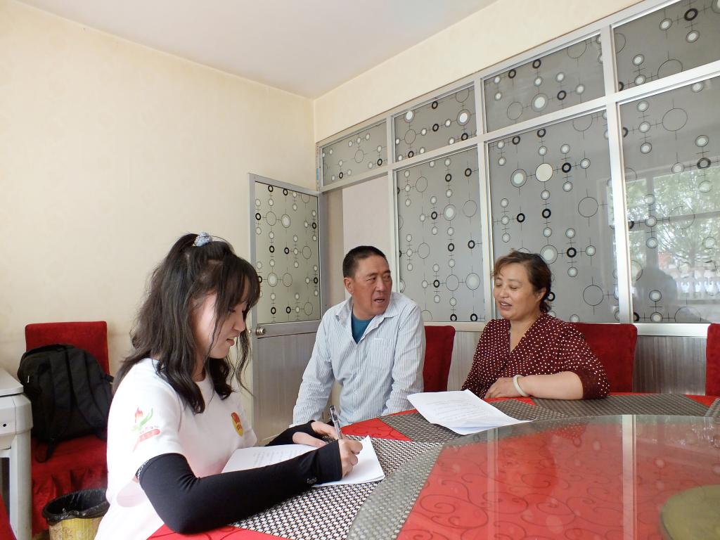 图为队员们在负责人的带领下记录克鲁克镇柏树山新村居民分布式光伏光热设施的安装情况。中国青年网 通讯员 冯敏 摄