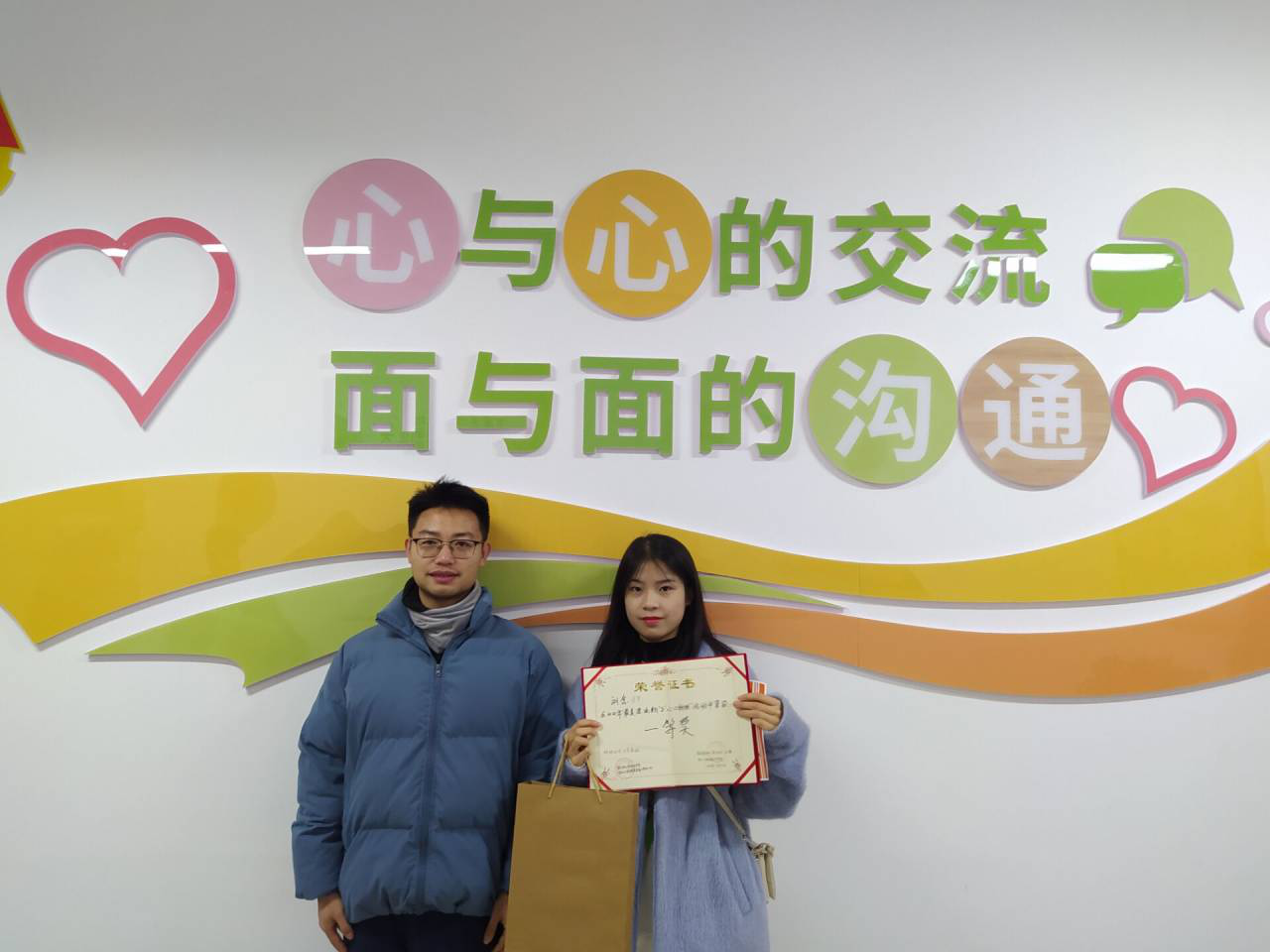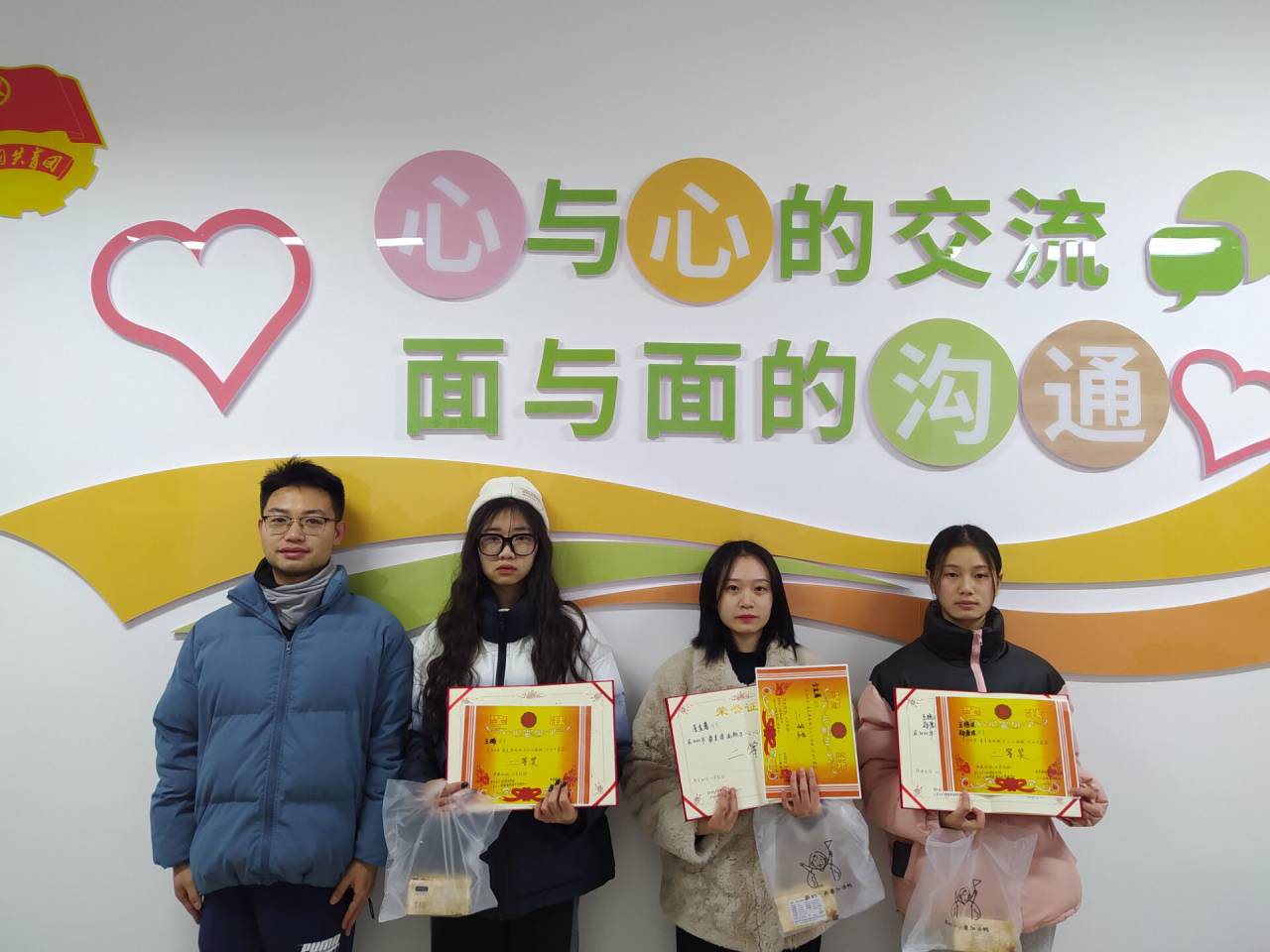 参与本次颁奖仪式的有聂浩虹老师、王薇老师、心理部的负责人和志愿者干事以及获奖人员6名。首先,由王薇老师宣布本次获奖名单并致辞。获奖同学分别是: