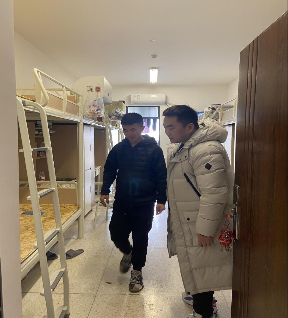 物工2003班的冯晨阳同学,家住河北省石家庄市高邑县西富村乡南塔影村,由于疫情原因不能回乡,张书记嘱托:一是要遵守留校的相关制度,做好疫情防控,随时和家长、公司、辅导员保持联系;二是好好利用寒假这一个多月的时间查漏补缺,学好专业知识;三是放松心态,后面公司会根据实际情况对因疫情不能回家的员工进行慰问。
