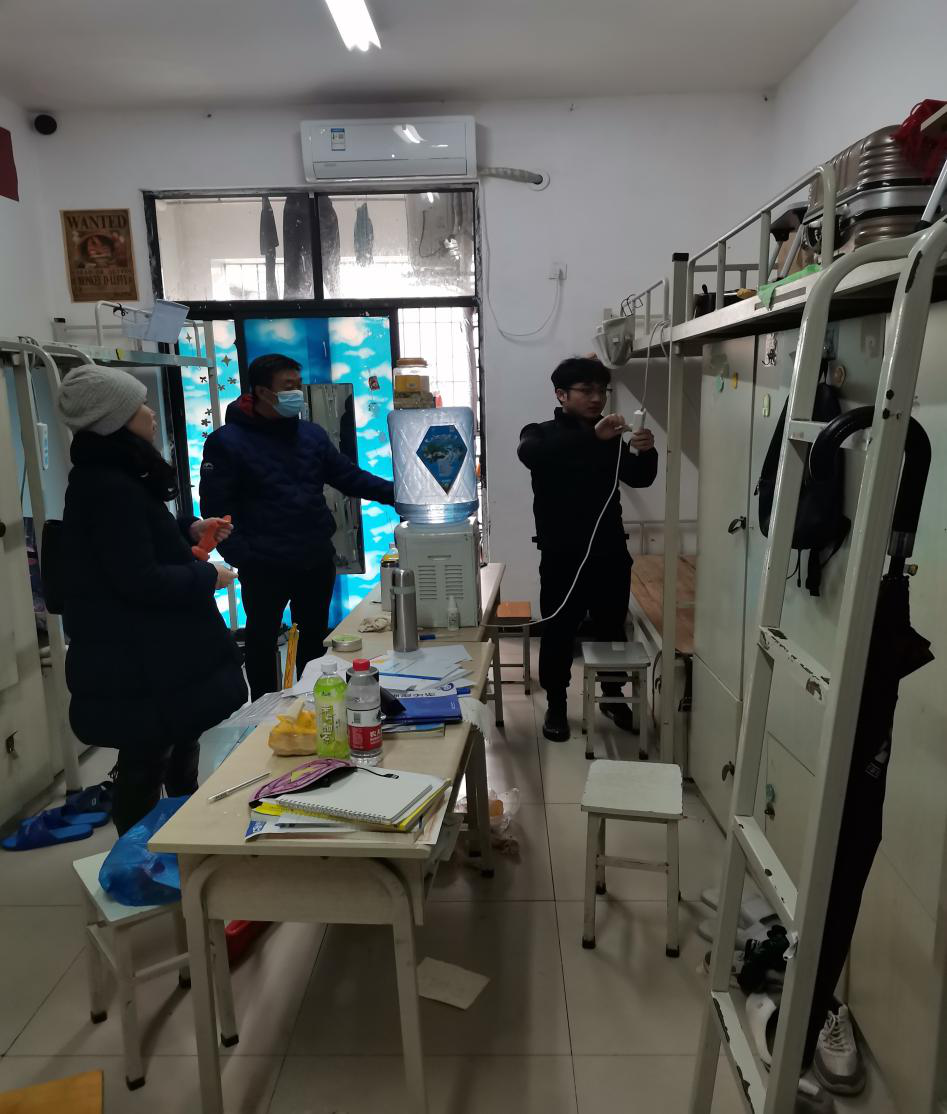 为贯彻落实教育部、市教委有关会议和相关精神,及公司关于切实做好寒假(春节)期间疫情常态化的公司安全稳定工作的通知。1月18日,公司党总支书记张红斌、党总支副书记毛弋带领全院辅导员、班主任深入员工宿舍认真检查员工“三关”(关水、关电、关门窗)落实情况,做好防火、防盗工作,同时了解留校员工的实际情况,站好最后一班岗。