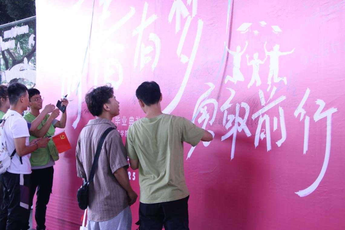 毕业生们正在“签名墙”签名