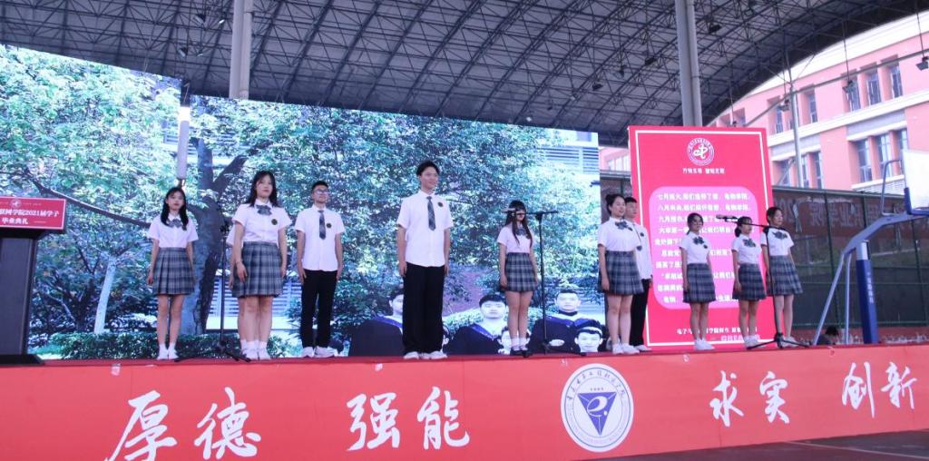 毕业典礼上,首先由同学们带来歌曲串烧《起风了》、《重电校园的日子》,悠扬的歌声响起,用暖心的歌曲和温馨的祝福拉开了2021届毕业典礼的序幕。