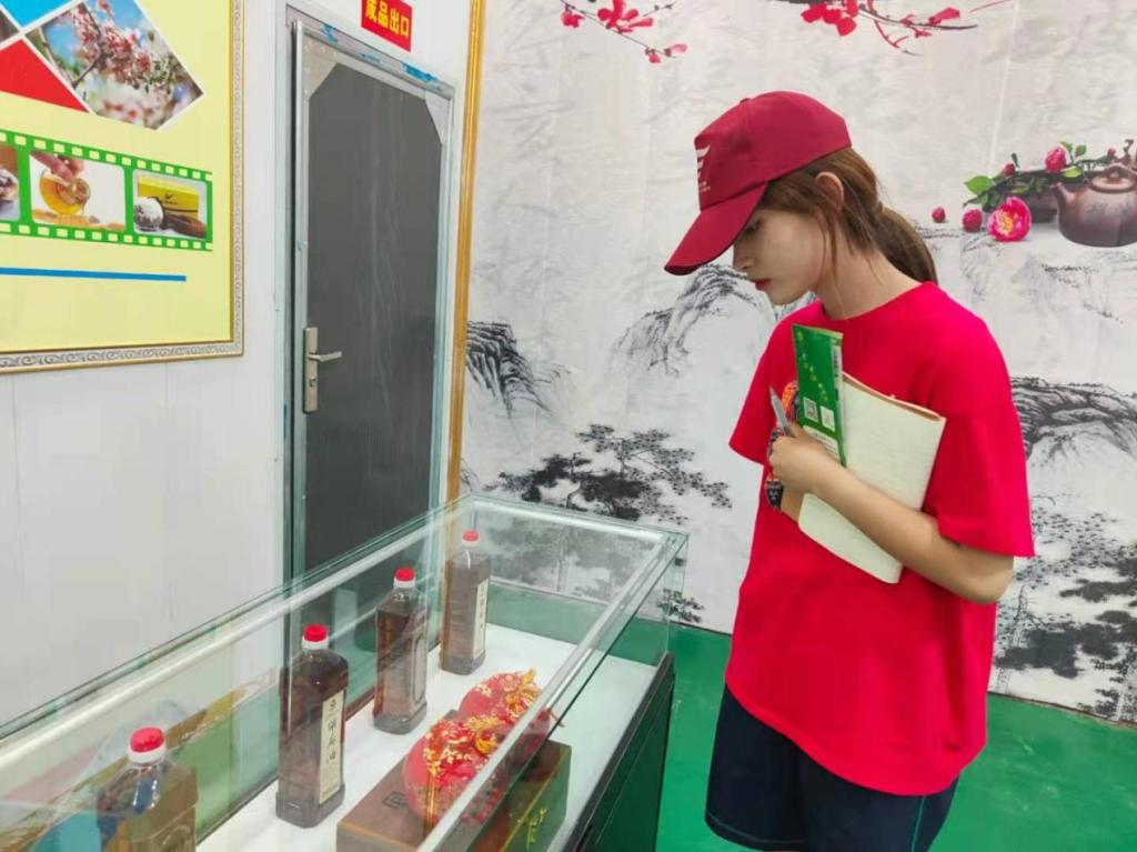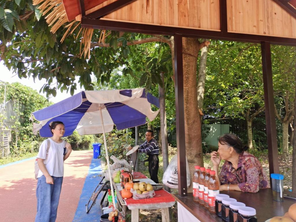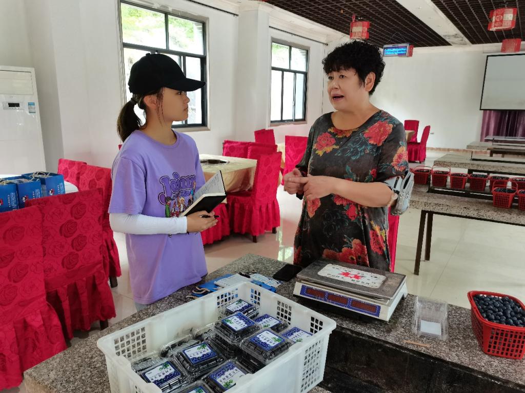 图为实践队员在中华梨村与商户了解农产品情况