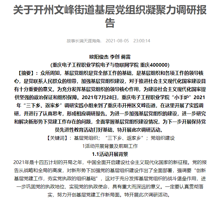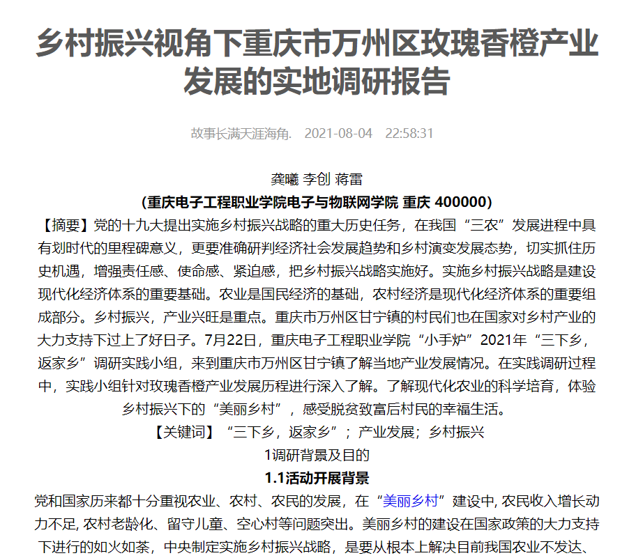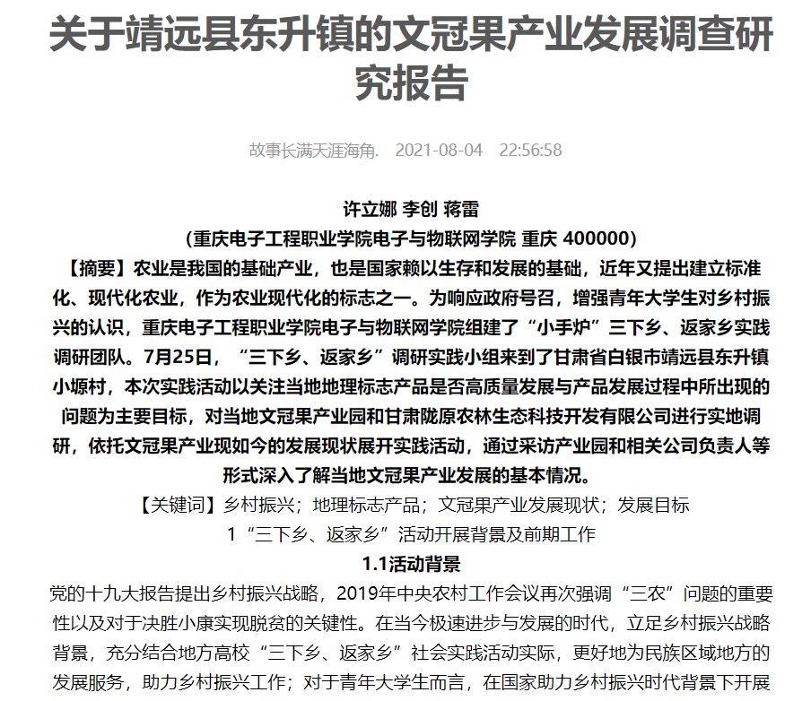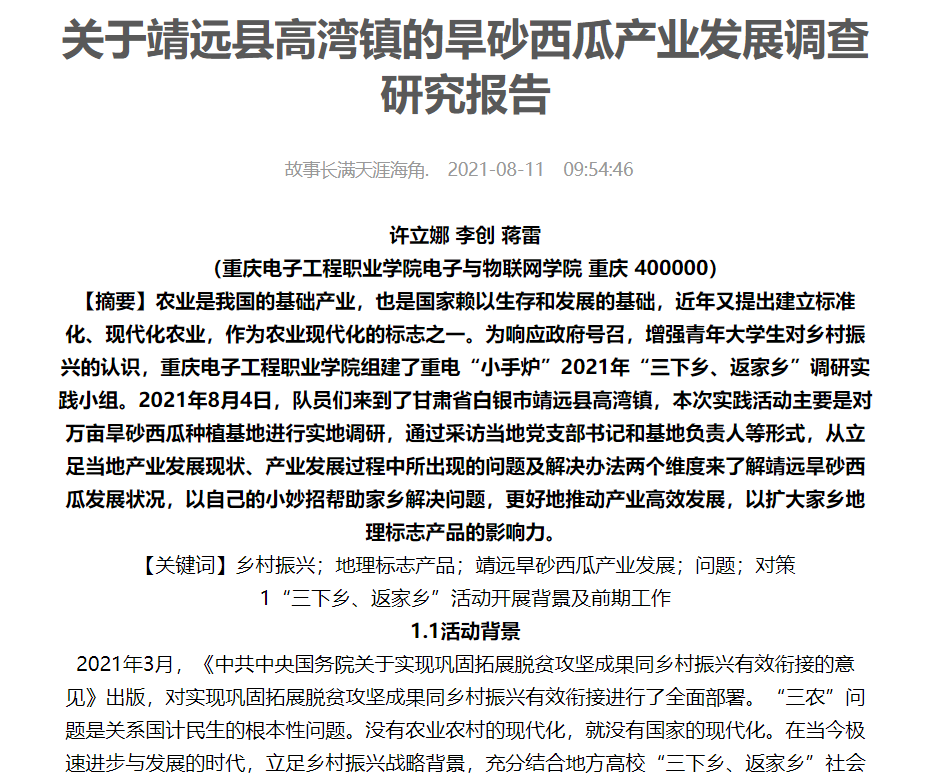 图为实践队员发表于中国青年网的调研报告截图