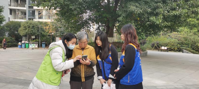 太阳成集团tyc234cc小手炉志愿服务队的“暖手暖心老年群体智能手机使用项目”成为重庆市高校唯一入选2021年“金晖行动——智慧助老”志愿服务示范项目。12月12日下午,“小手炉”志愿服务队跟随社区负责人前往医专家属区开展“情系老人家,智慧‘金晖’照万家”活动。
