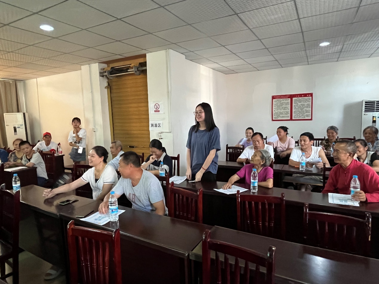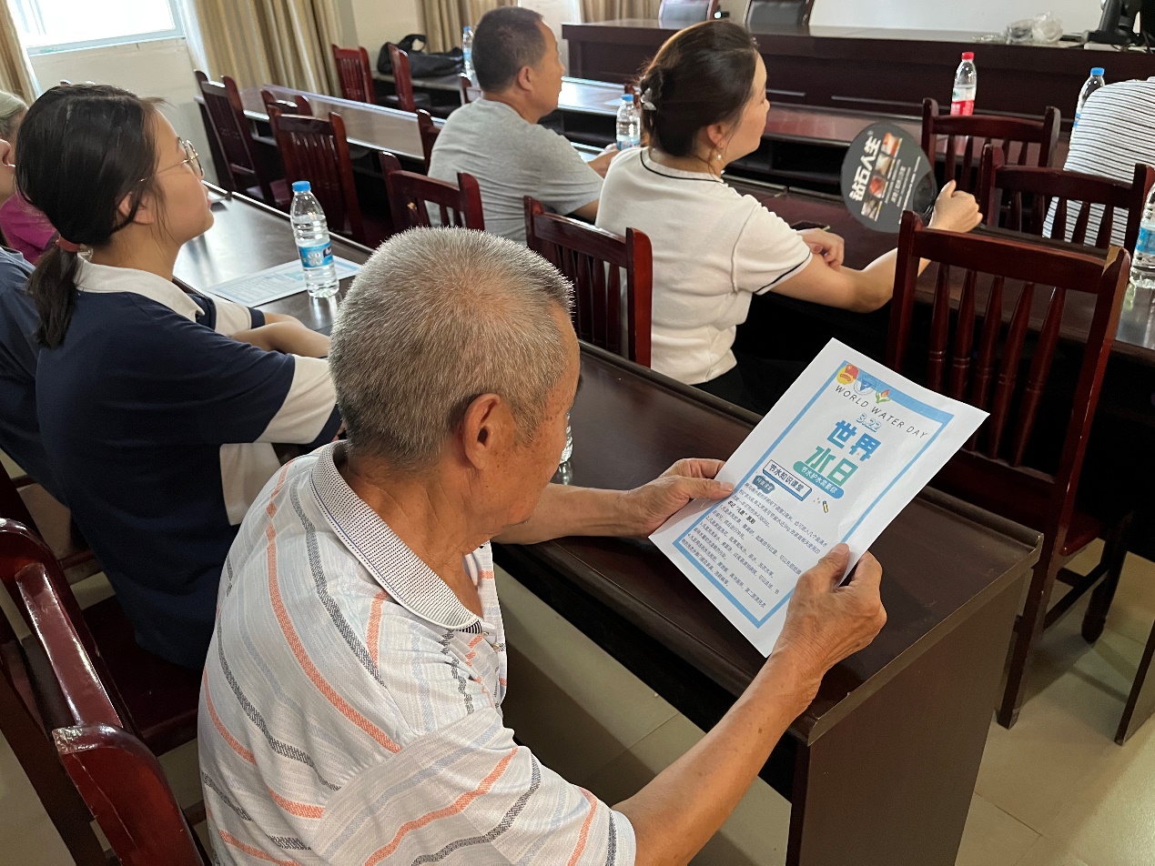 图为本次活动指导老师向镇中村村民宣讲节水护水知识