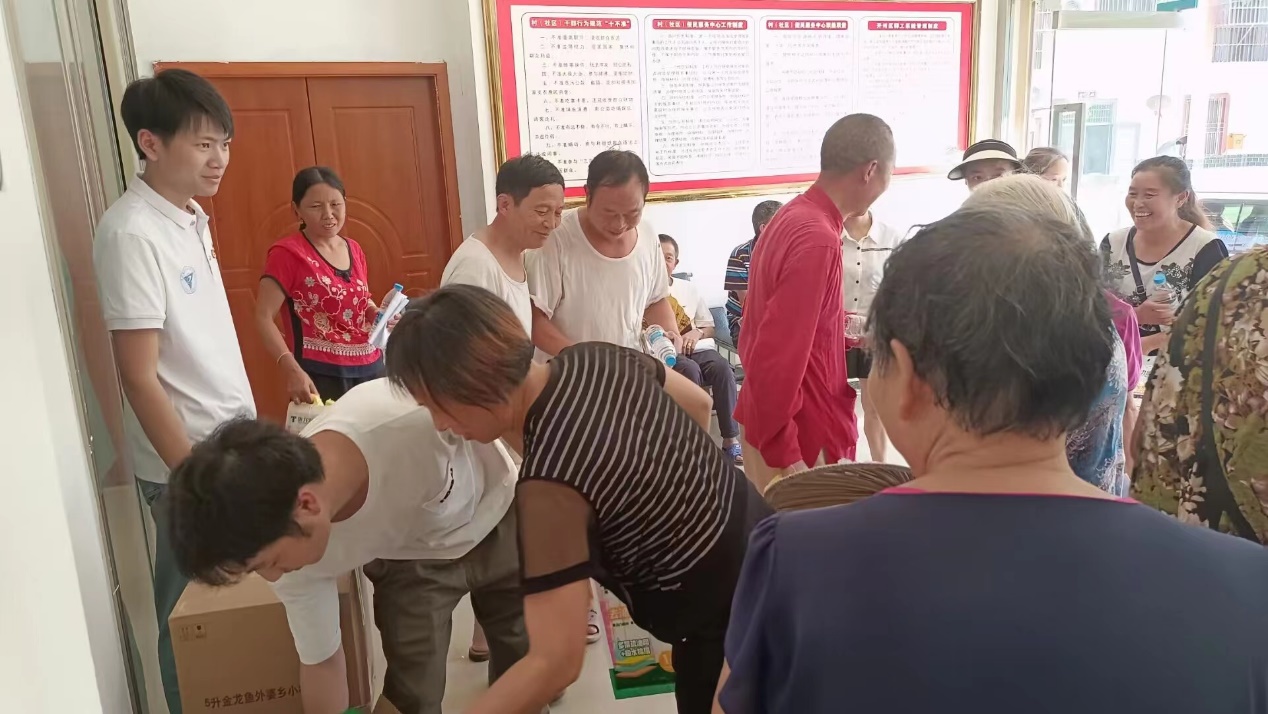 图为本次活动后队员们向镇中村村民发放节水护水小礼品
