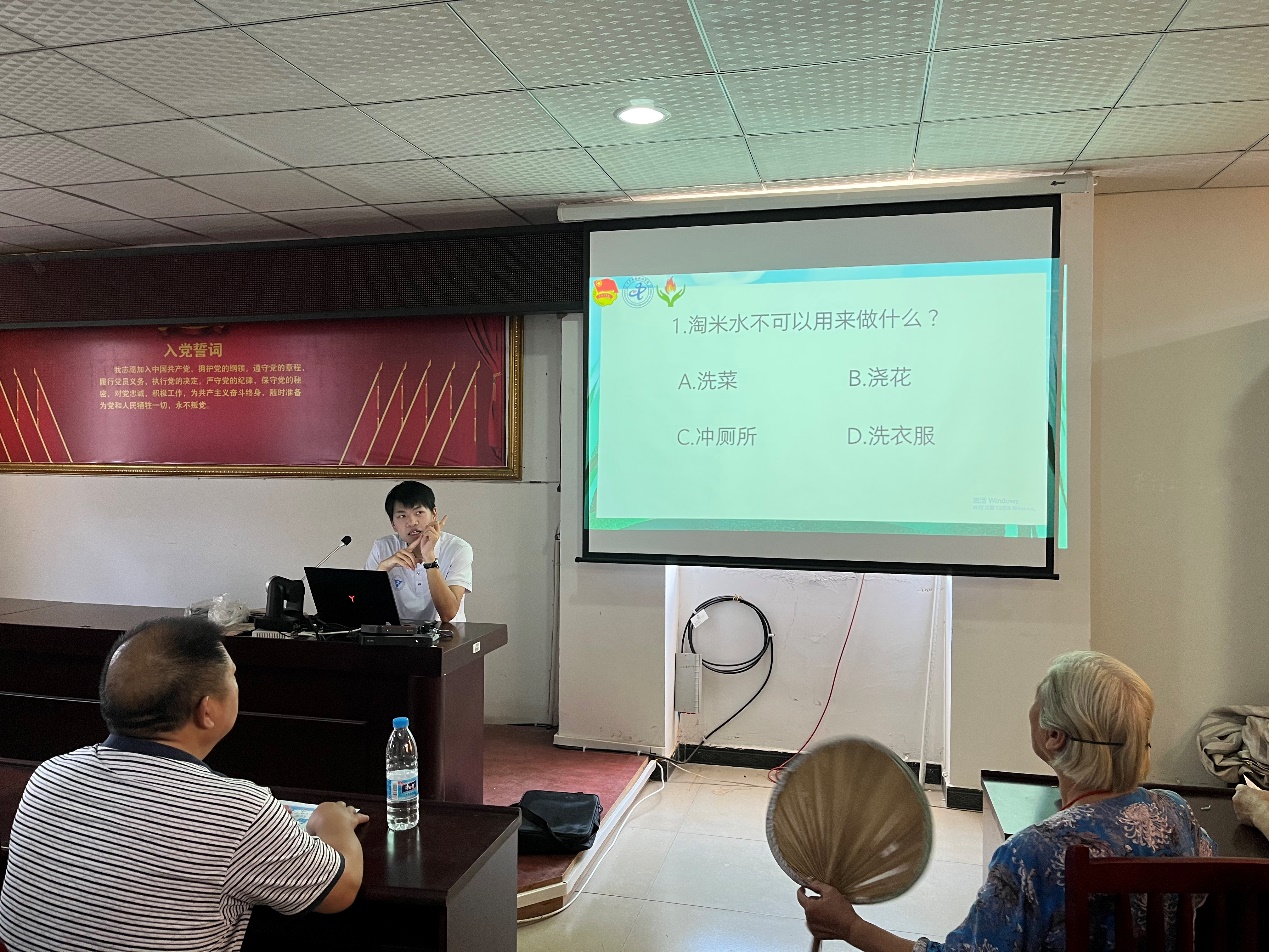 活动最后开展“节水护水”有奖知识问答活动。通过知识问答这一环节巩固大家“节水护水”的意识,让群众了解到节约用水的主要做法和意义,加深群众对节水护水工作及相关知识的了解,让广大群众熟悉水、支持水、保护水。