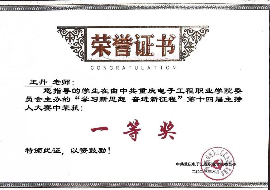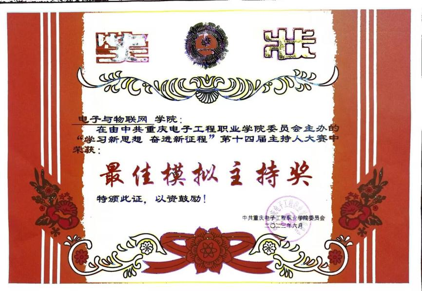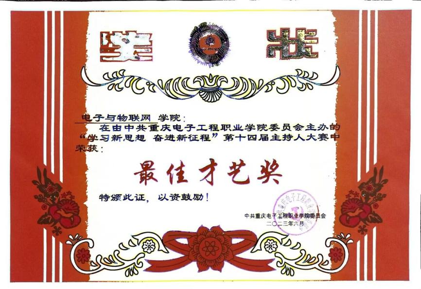 为充分发挥美育的价值引领作用,增强思政课铸魂育人的效果,引导广大青年学习宣传党的二十大精神,重庆电子工程职业公司6月1日举办第十四届“学习新思想 奋进新征程”主持人大赛。本次主持人大赛中,公司荣获第十四届主持人大赛3个一等奖、以及3个最佳:最佳主持、最佳才艺、最佳模拟主持。