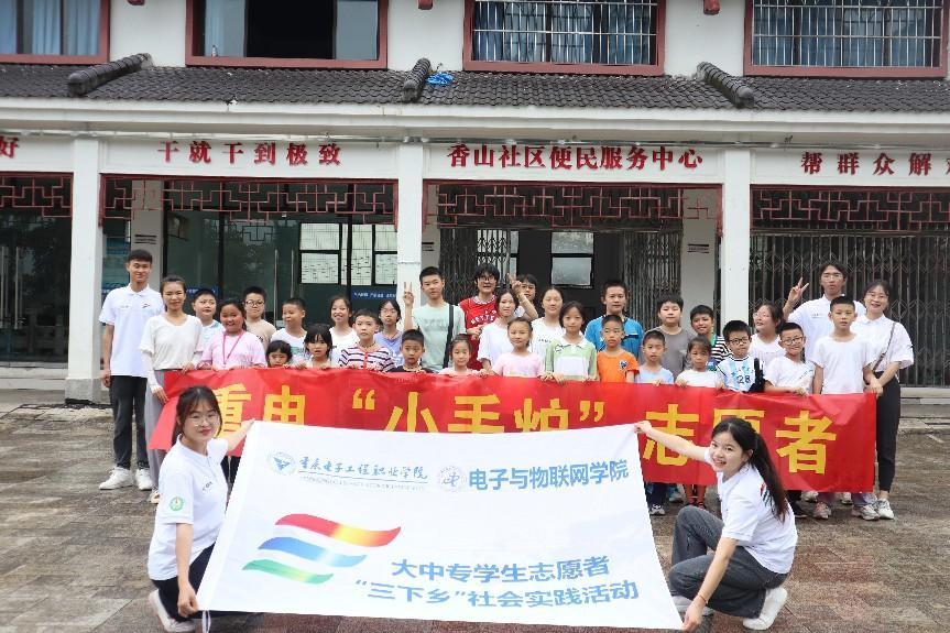 图为重电老师、队员们与小朋友们合影留念