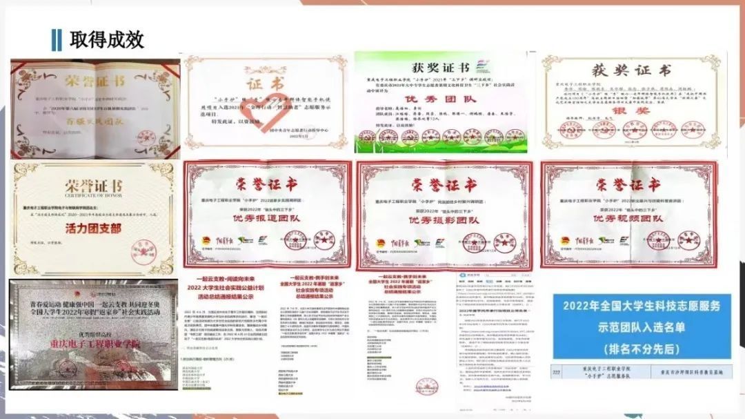 公司团总支以团中央关于实践育人和老员工社区实践的相关文件精神为指导,统筹班级团支部、专业社团特设团支部、志愿服务队特设团支部共同参与,最终形成了“技能助老”“技能助残”“技能助教”等一系列范围广、影响大、可持续的“校-社”协同实践育人项目,截止2023年4月,团总支下属16个团支部入选“沙坪坝区千名基层服务青年优才派遣计划”(全区第一,占沙坪坝区入选比例的23.8%),5个专业社团特设团支部参与7项团中央志愿服务示范项目、团队,覆盖社区逾20个。
