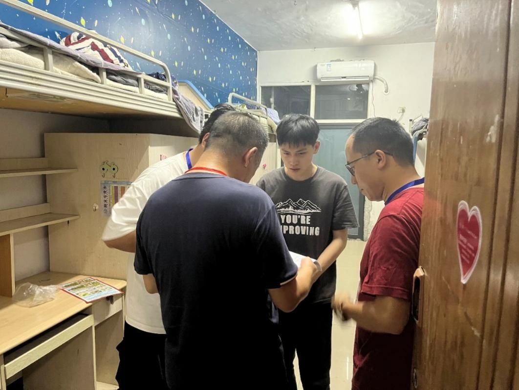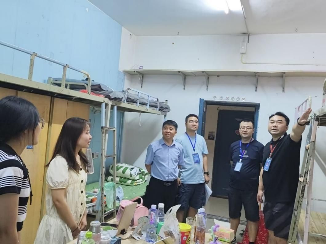 为了新学期营造良好的学习生活环境,深入贴切新生的生活,了解员工的到校情况和思想动态,9月9日晚,公司党总支书记张红斌带领班子成员及学管科辅导员走访寝室,看望新生。