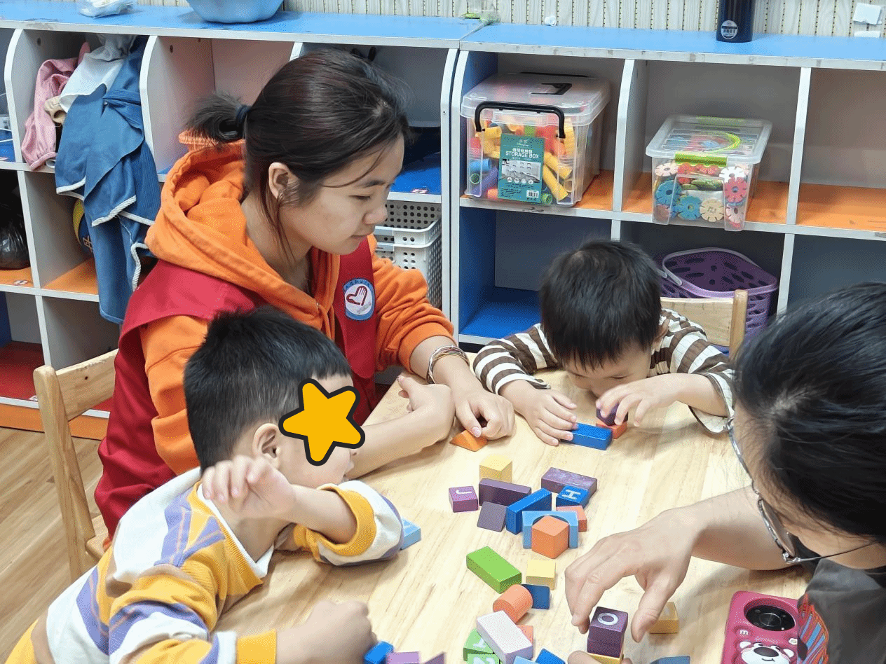 另一位志愿者则陪着“星儿”们搭积木,她耐心地引导孩子们发挥想象力,创造出各式各样的建筑。让孩子们在游戏中锻炼了动手能力。