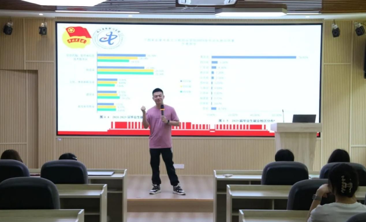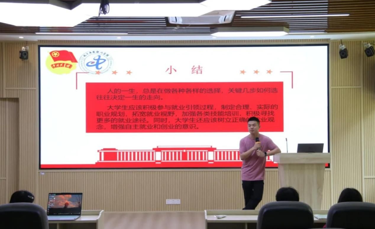 为强化员工就业意识、明确就业发展方向及提升就业能力,5月17日,太阳成集团tyc234cc团总支在12-106举办“老员工就业领航--助力青年学子迈入职场”,2020级优秀毕业生欧阳俊杰主讲。