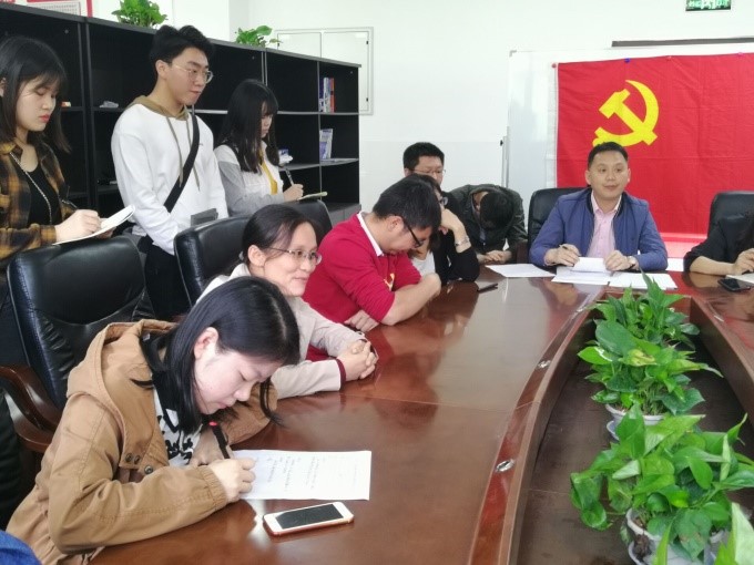 2019年5月9日,信息服务系支部召开关于确定林涛等八位同志为入党发展对象的征求党内外群众座谈会,会议在12-208会议室举行,会议在支部刘睿强书记、冯筱佳副书记的安排指导下,组织委员周言敏同志具体组织和实施,冯筱佳和谌夏同志负责整理谈话内容。
