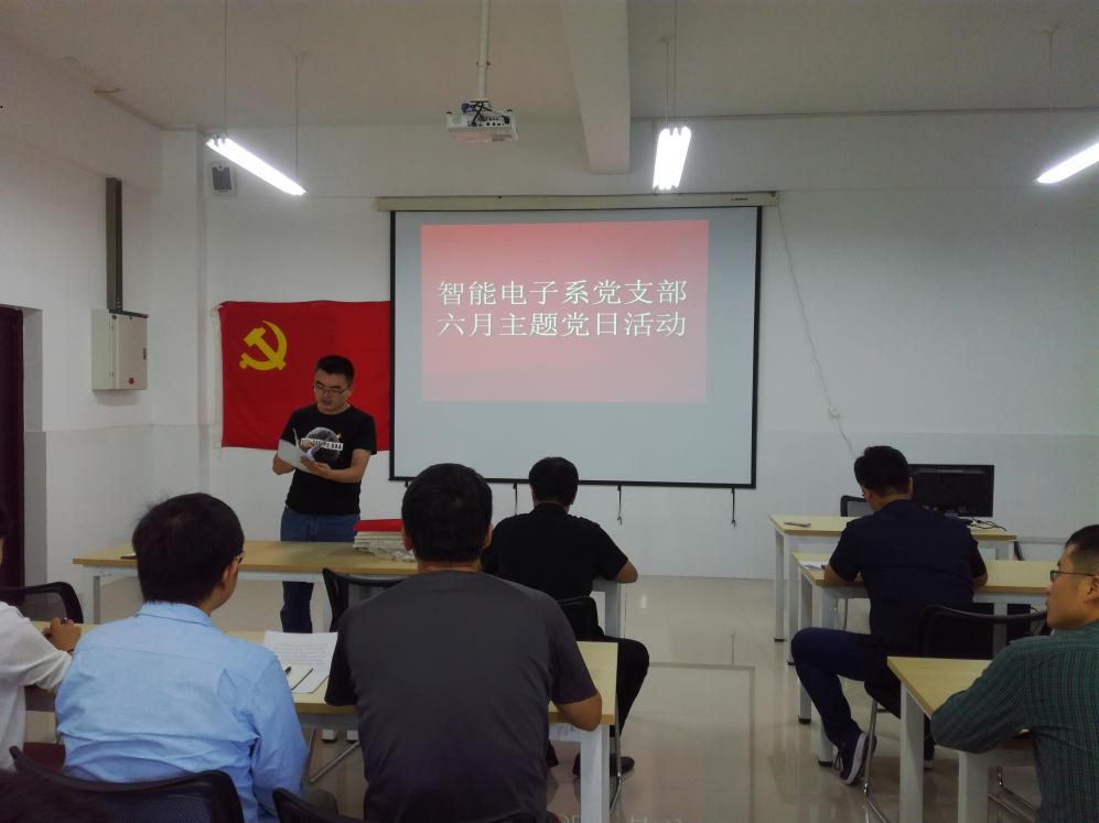 2019年6月13日,太阳成集团tyc234cc智能电子系党支部在12-504开展了6月份主题党日学习活动,本次学习活动的主题是“弘扬爱国奋斗精神,建功立业新时代”。支部书记王用鑫同志主持了本次活动,全体支部党员参加学习。
