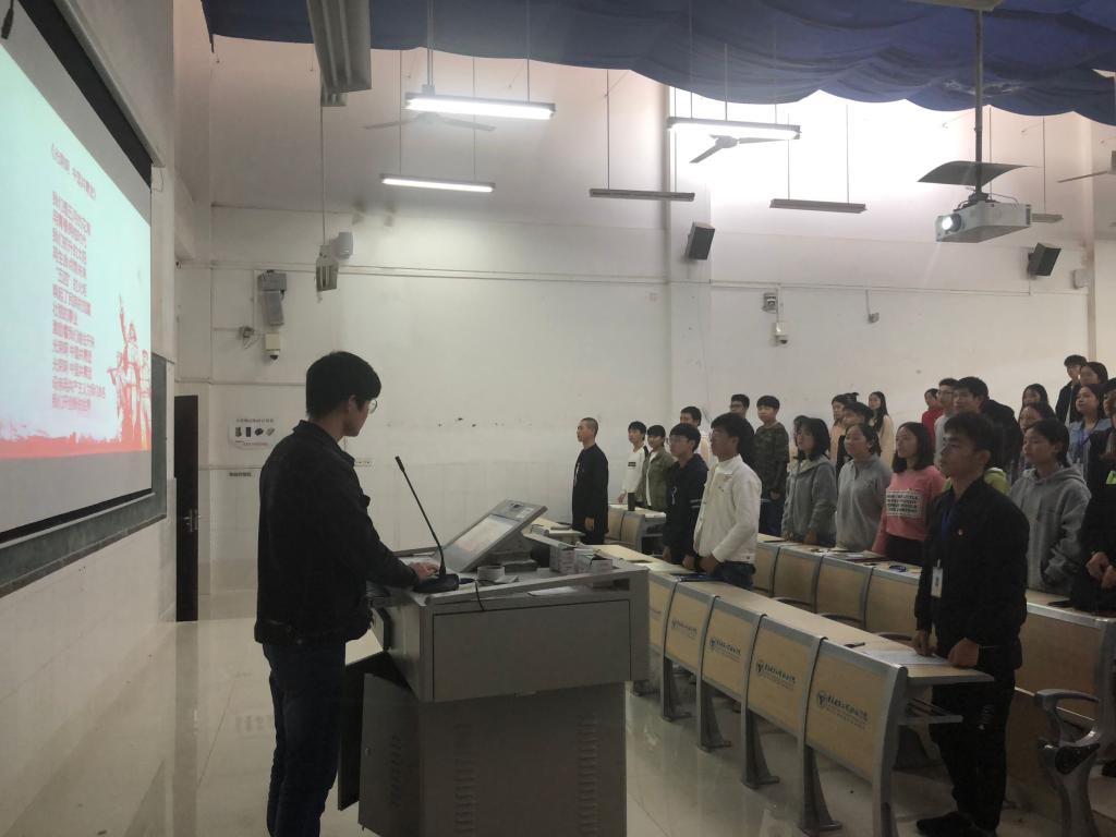 活动开始,首先由纪书宇老师带领全体同学齐唱中国共青团团歌《光荣啊,中国共青团》。在振奋人心的团歌过后,纪书宇老师就开始了今天的授课。