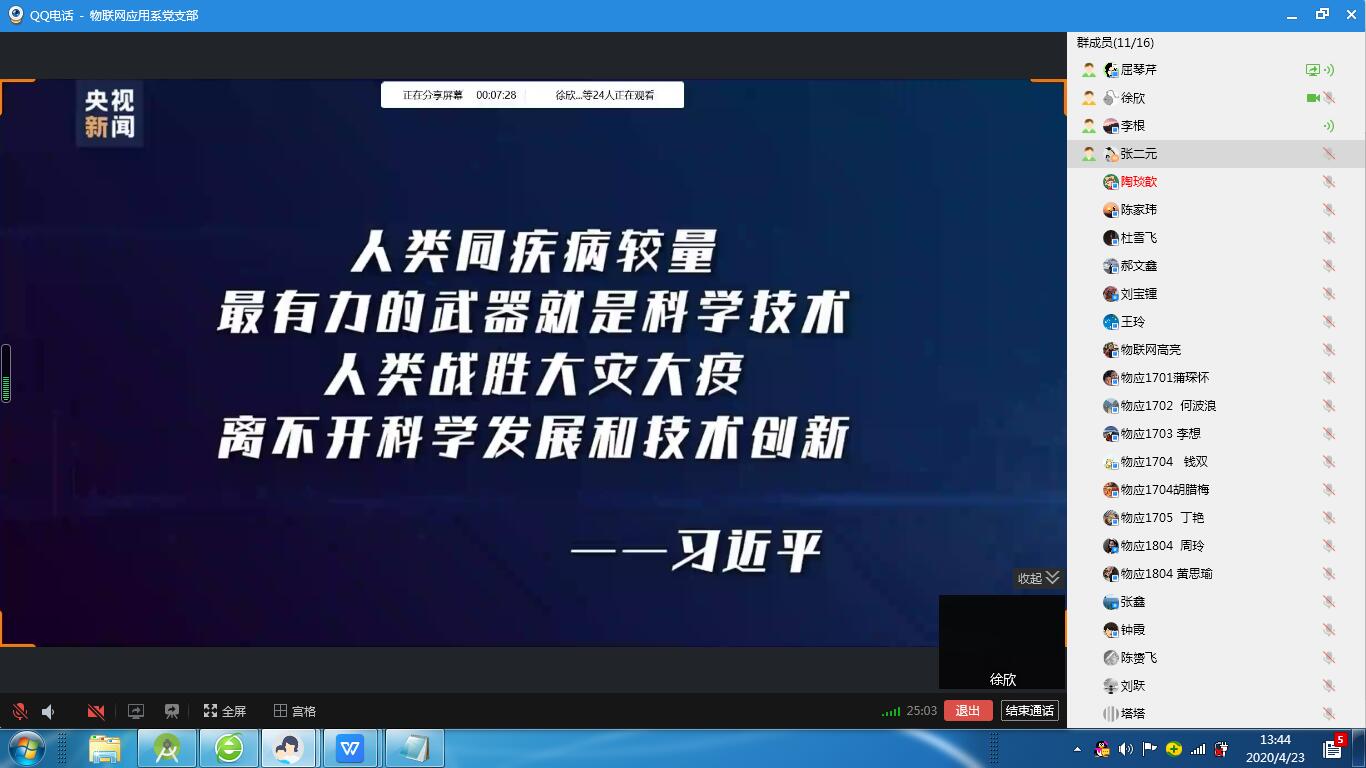 4月23日13:20,物联网应用系党支部采用视频会议的学习形式开展“坚定制度自信,强化爱国意识”的主题党日活动。本次活动由支部书记徐欣同志主持,全体师生党员和积极分子代表参会。
