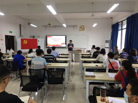 6月15日智能电子系党支部在12504召开党员大会,就党员发展及预备党员转正事宜进行讨论,支部书记王用鑫主持会议。