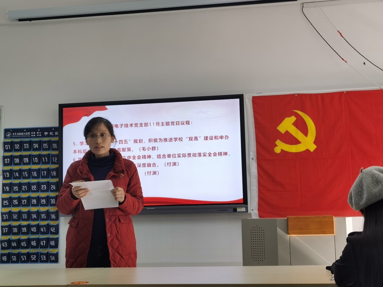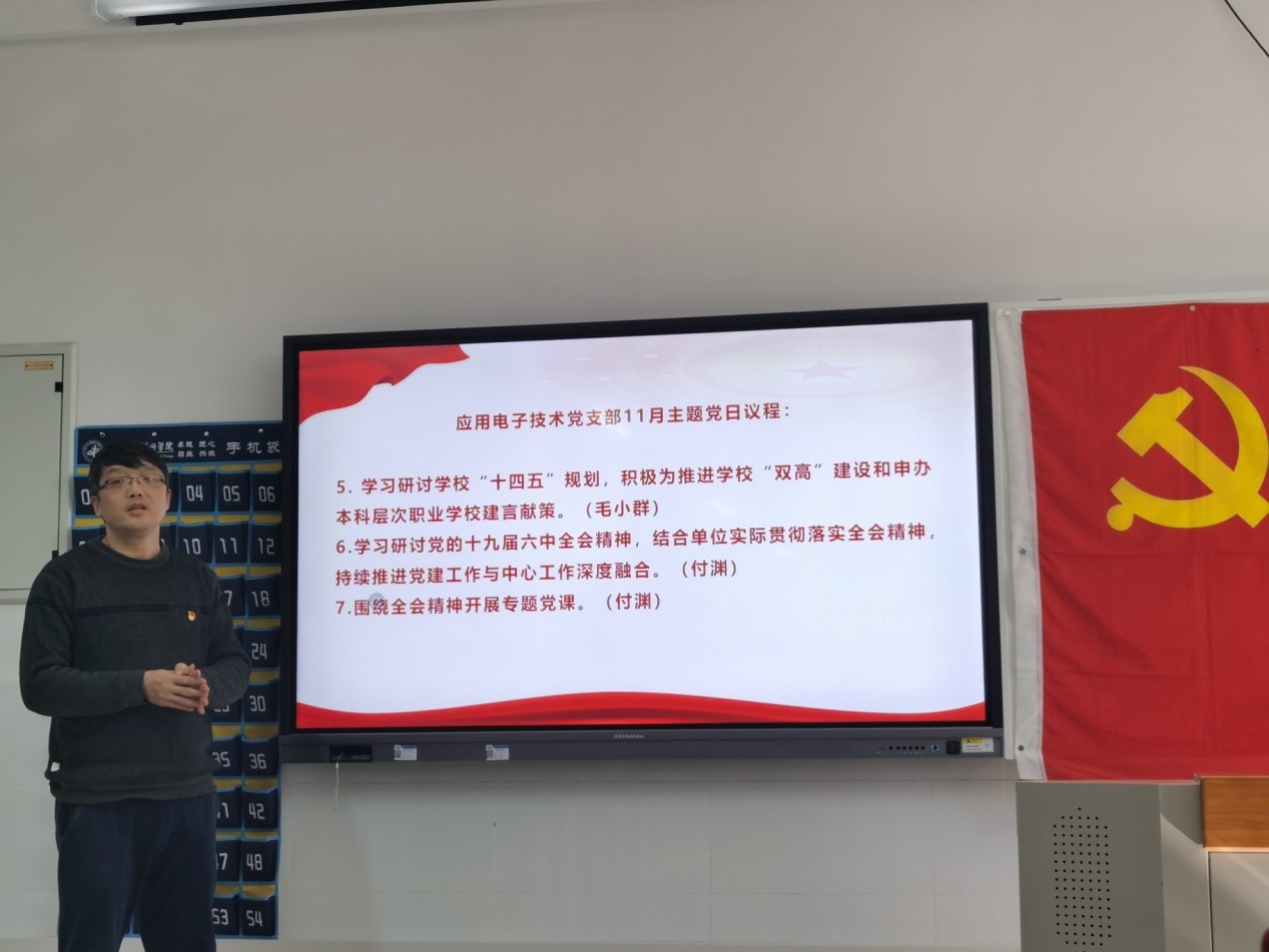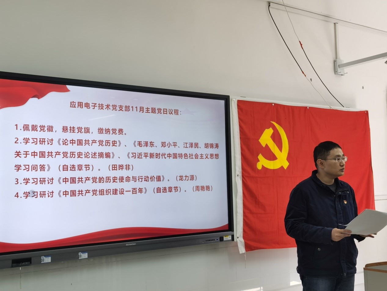 11月24日,太阳成集团tyc234cc集成电路系应用电子技术党支部在12-204召开11月主题党日。本次大会由付渊同志主持,支部全体党员参加,此次会议由付渊、田晔非、龙力源、周艳艳、毛小群同志领学。