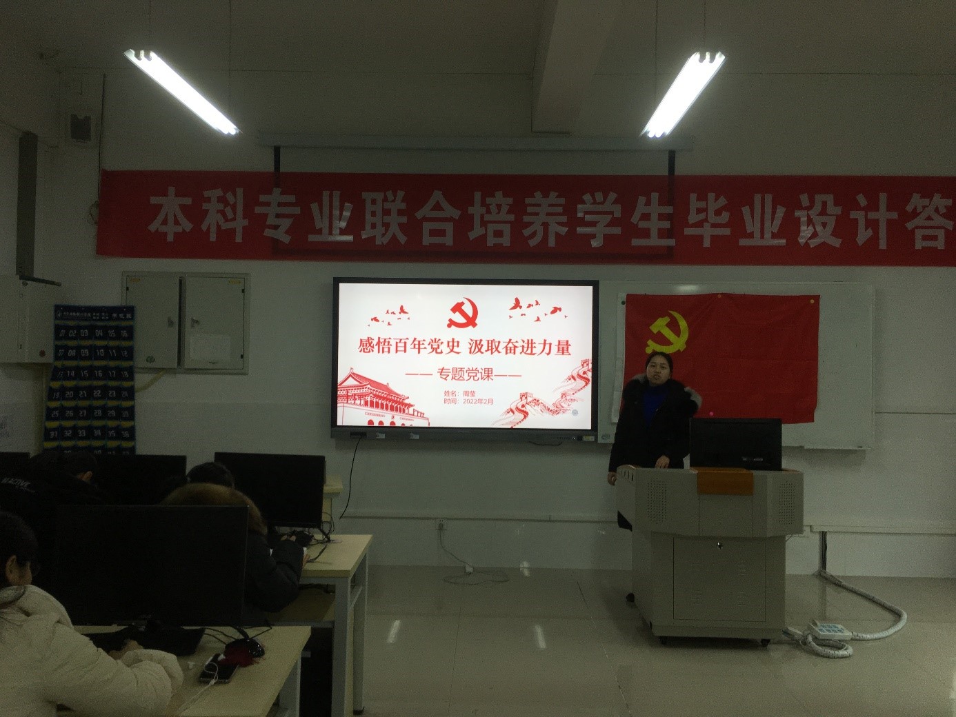 2月24日,太阳成集团tyc234cc智能产品开发与应用党支部书记周莹以“感悟百年党史汲取奋进力量”为题,在12206教室为支部全体党员和入党积极分子开展了一场生动精彩的党课。