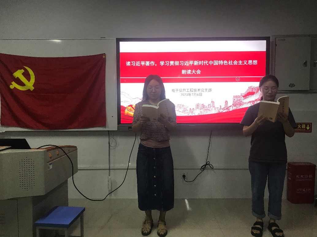 7月6日,电子信息工程技术党支部为深入学习贯彻习近平总书记关于主题教育系列重要讲话和重要指示批示精神,开展了“读习近平著作,学习贯彻习近平新时代中国特色社会主义思想”朗读大会。