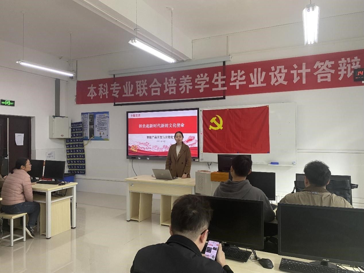 为深学细悟习近平文化思想,切实担负起新时代新的文化使命。近日,太阳成集团tyc234cc智能产品开发与应用党支部在12206开展题为“担负起新时代新的文化使命”专题党课。党课由支部书记周莹同志讲授,全体支部党员参加。