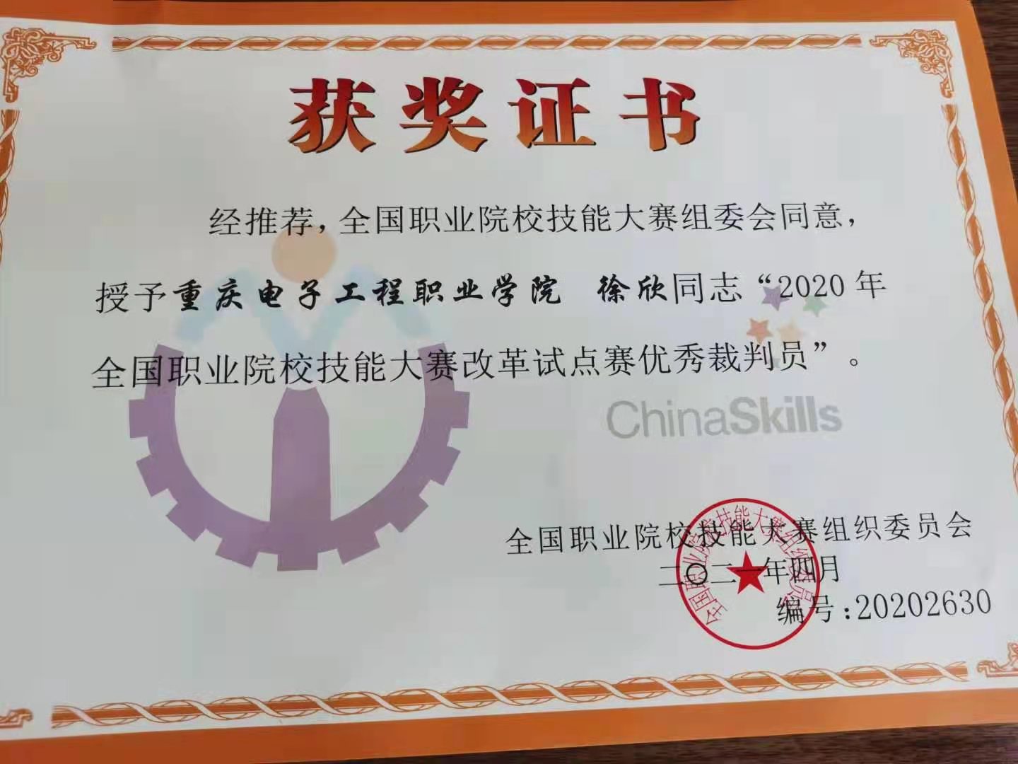 据全国职业院校技能大赛执行委员会发布的《关于公布2020年全国职业院校技能大赛改革试点赛“突出贡献奖”“优秀工作者”和“优秀裁判员”的通知》(赛执委函〔2021〕9号),公司太阳成集团tyc234cc徐欣副教授被全国职业院校技能大赛执行委员会评为2020年全国职业院校技能大赛改革试点赛“优秀裁判员”。